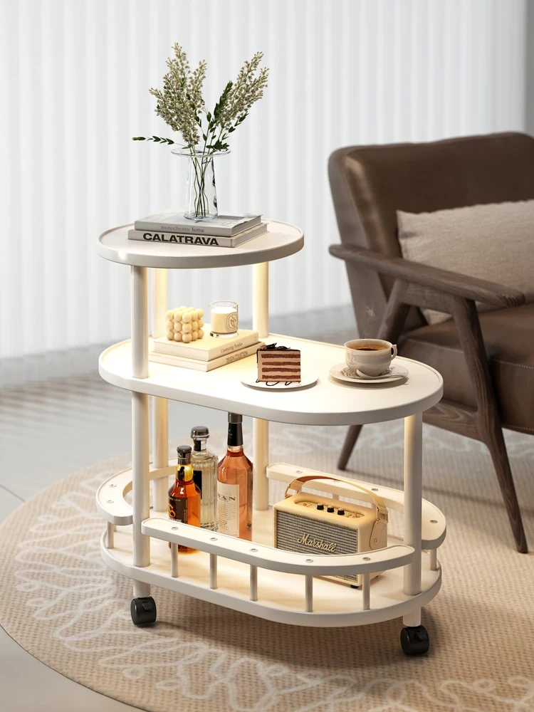 Modern Minimalist Mobile Side Table - Compact Cream-Style Coffee Cart for Small Living Rooms - Perfect for Easy Storage and Stylish Décor