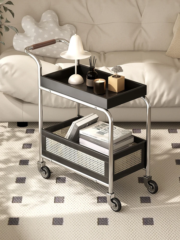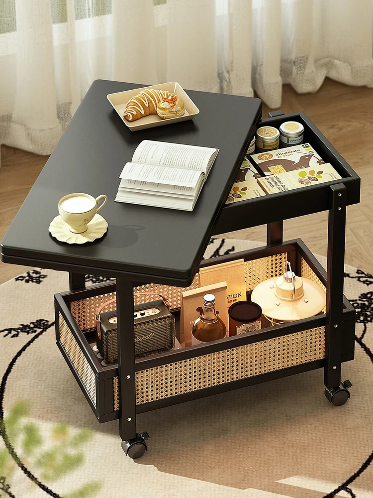 Minimalist Sofa Side Table with Wheels - Versatile Corner Table for Home Use, Perfect for Tea and Snacks, Compact Design for Small Spaces, Stylish Chinese-Inspired Side Cabinet