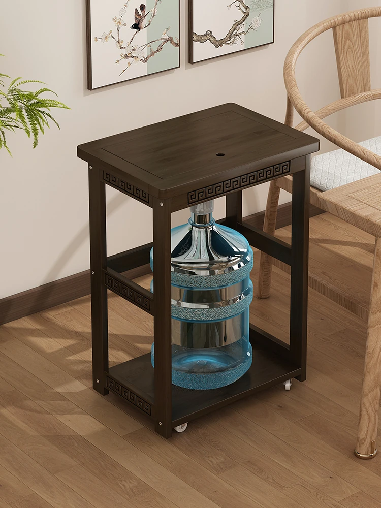Elegant Solid Wood Tea Table Set - New Chinese Style Tea Set with Movable Water Boiler and Integrated Tea Cabinet for Small Living Rooms