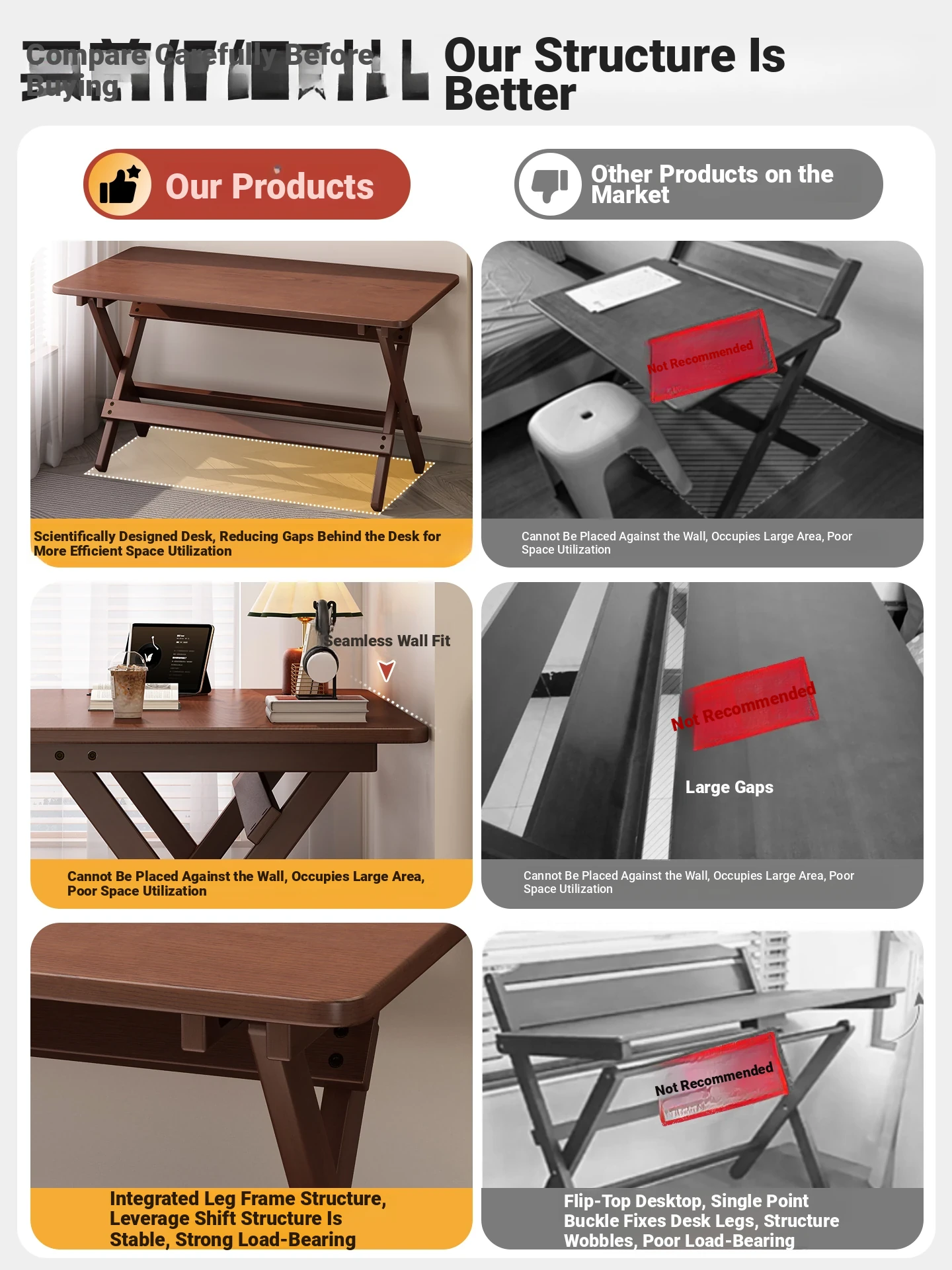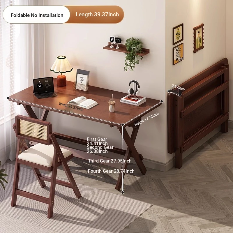 [Walnut Color]⭐Installation-Free and Foldable⭐100*45 Desktop⭐Four Levels of Height Adjustment⭐Improved and Reliable Wall