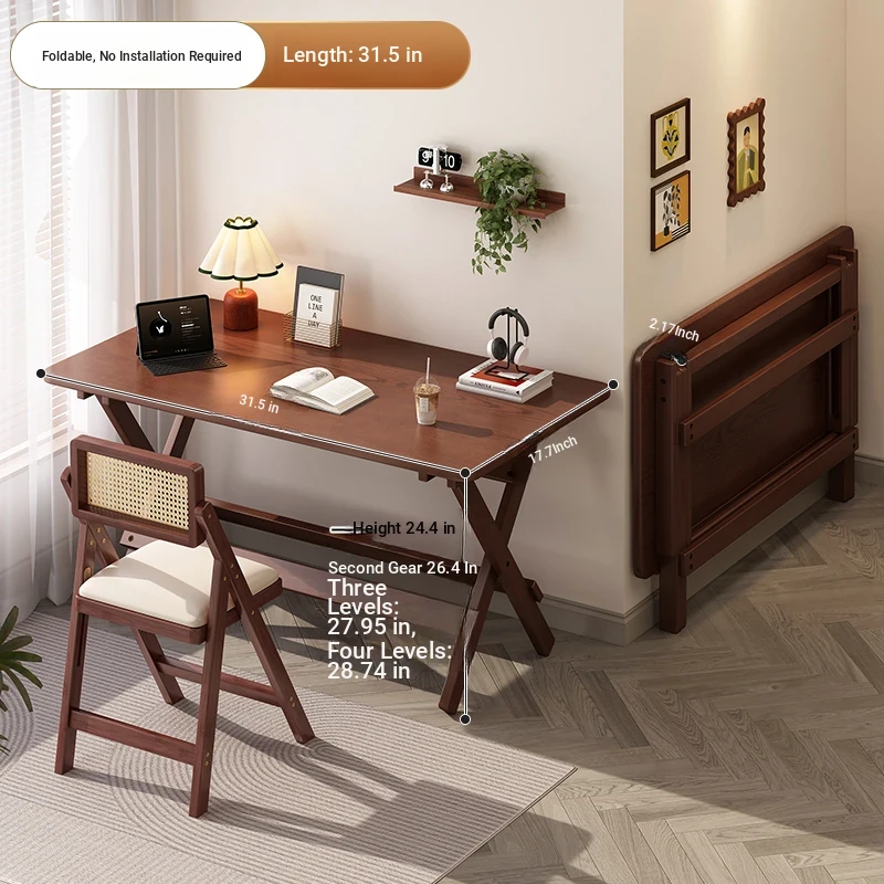 [Walnut Color]⭐Installation-Free and Foldable⭐80*45 Desktop⭐Four Levels of Height Adjustment⭐Improved and Reliable Wall