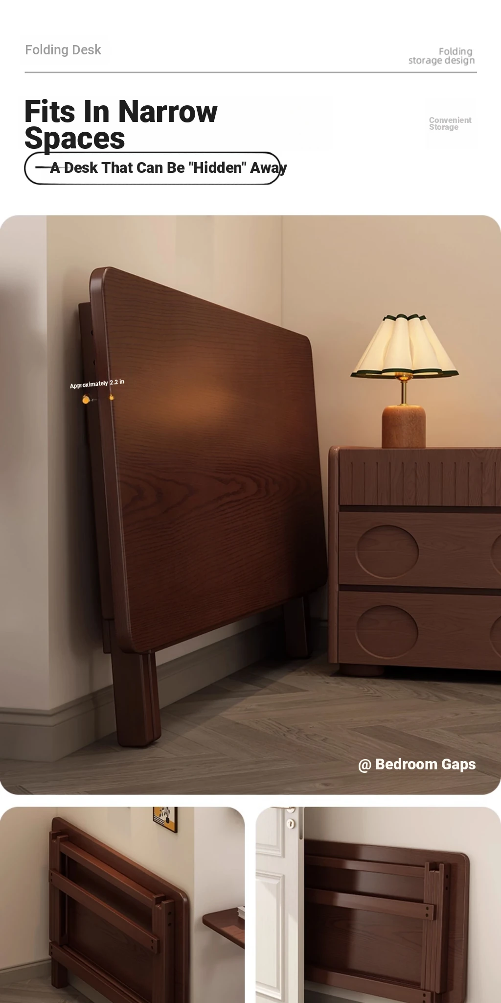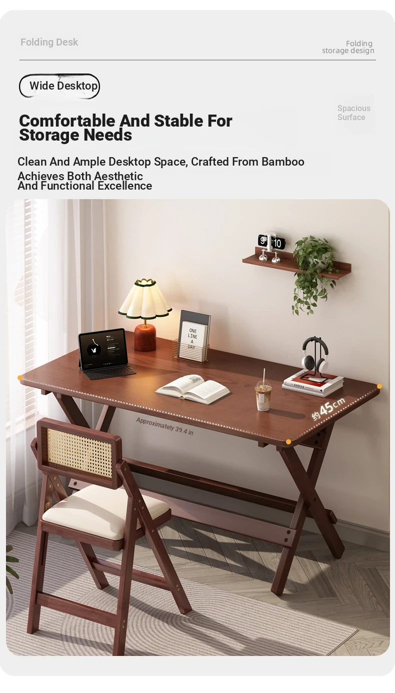 Compact Bamboo Folding Desk for Students - Stylish Home Office Table for Small Spaces, Perfect for Bedroom or Bedside Study!