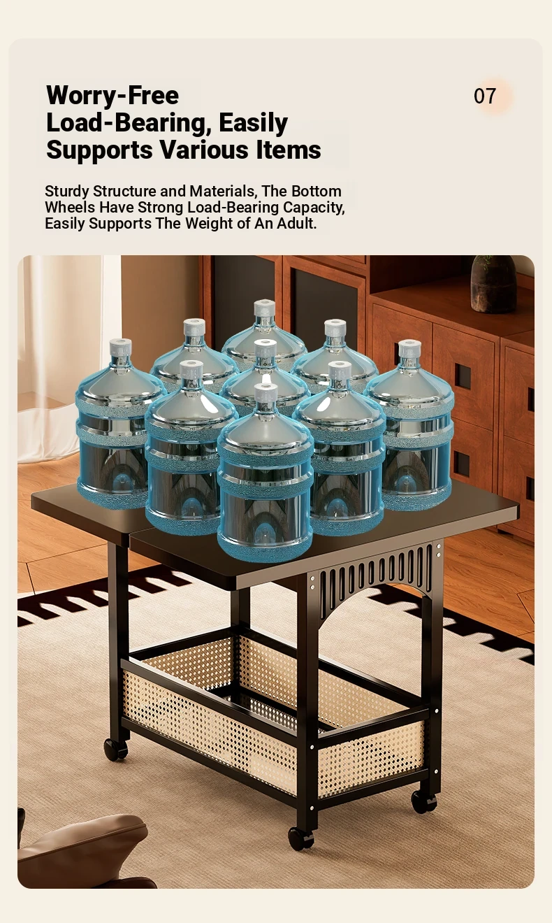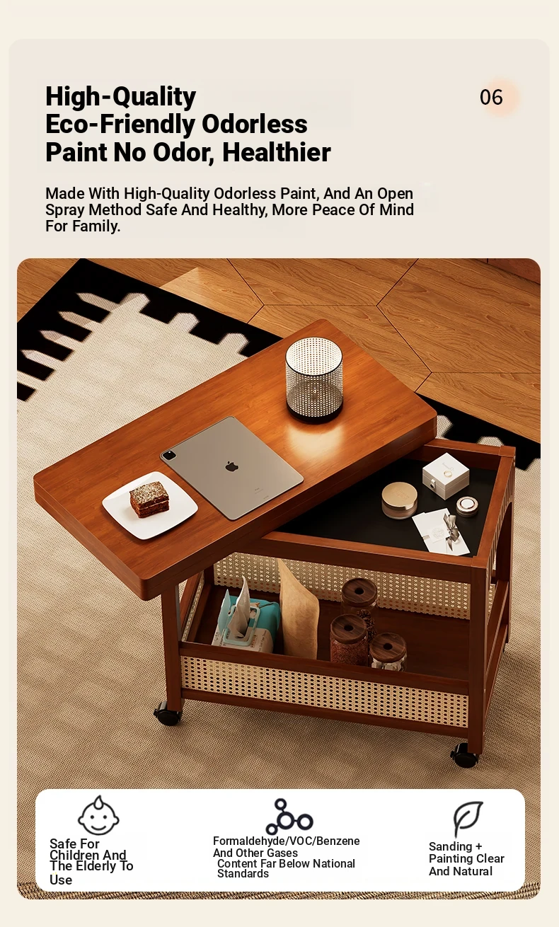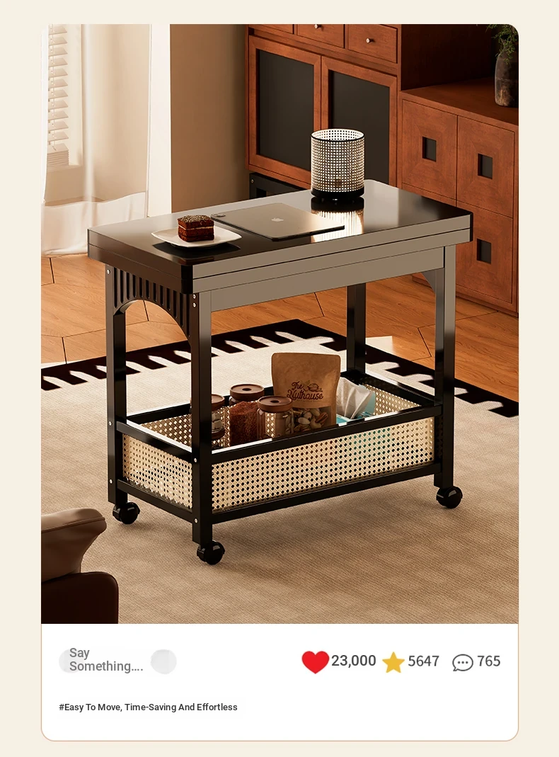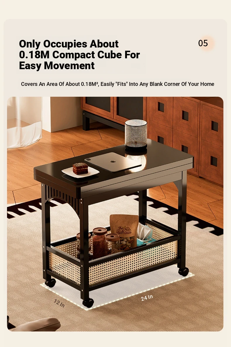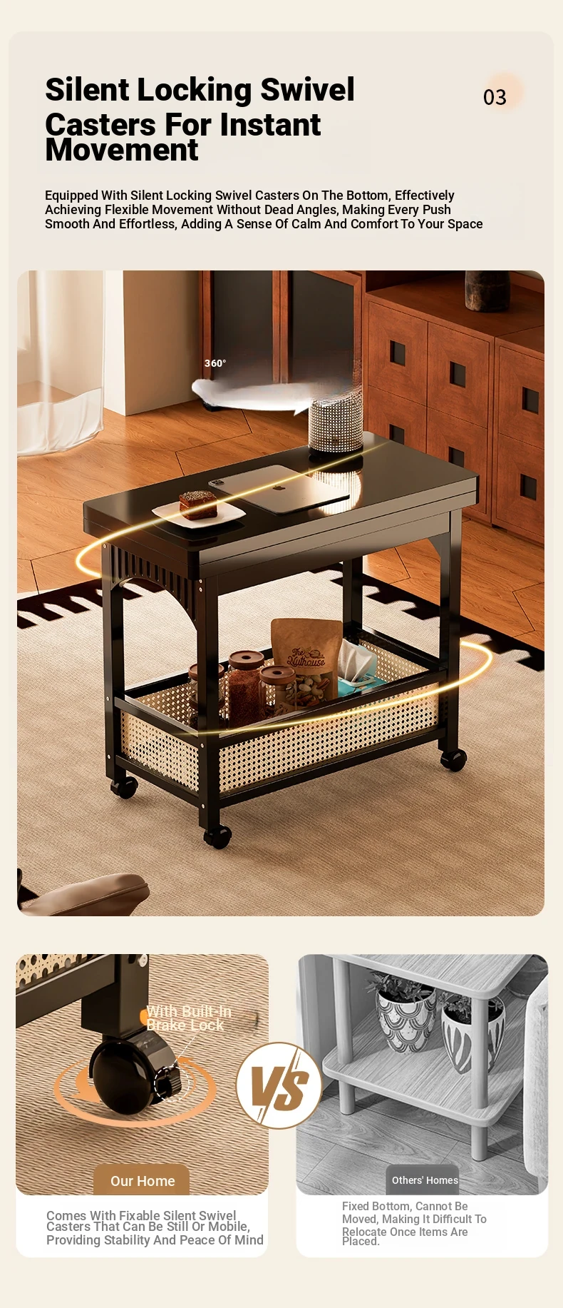 Foldable Solid Wood Tea Table - Vintage Style Mobile Side Table for Living Room, Space-Saving Expandable Sofa Cabinet