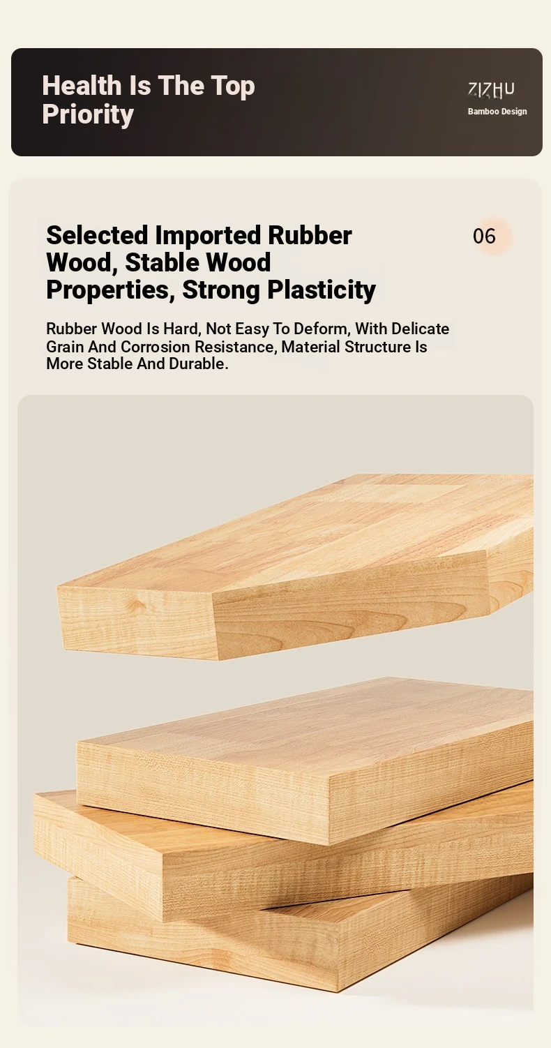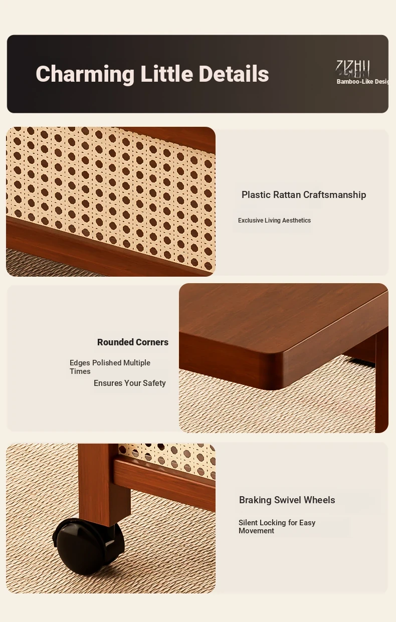 [Brown] Mobile Side Table [Rubber Wood Solid Wood Material]