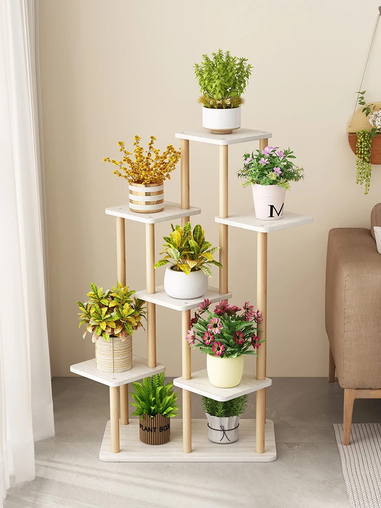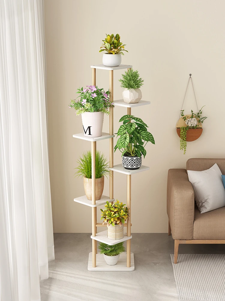 Elegant Wooden Plant Stand - Floor-Standing Flower Rack for Balcony and Living Room - Minimalist Design for Displaying Greenery and Home Décor