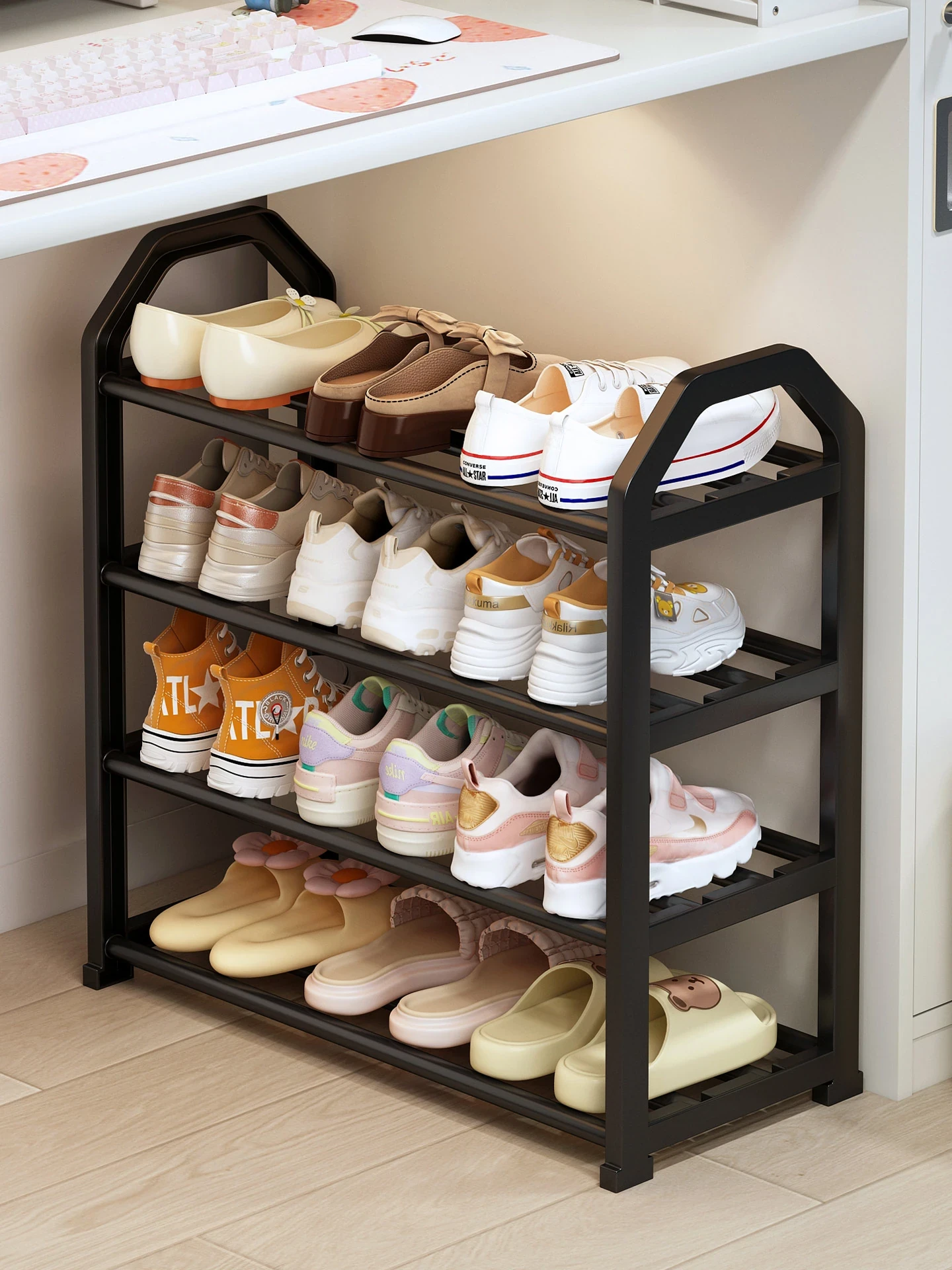 Compact Under-Desk Shoe Rack for College Dorms – Stylish Multi-Layer Shoe Organizer, Space-Saving Indoor Shoe Cabinet for Entryways and Rooms