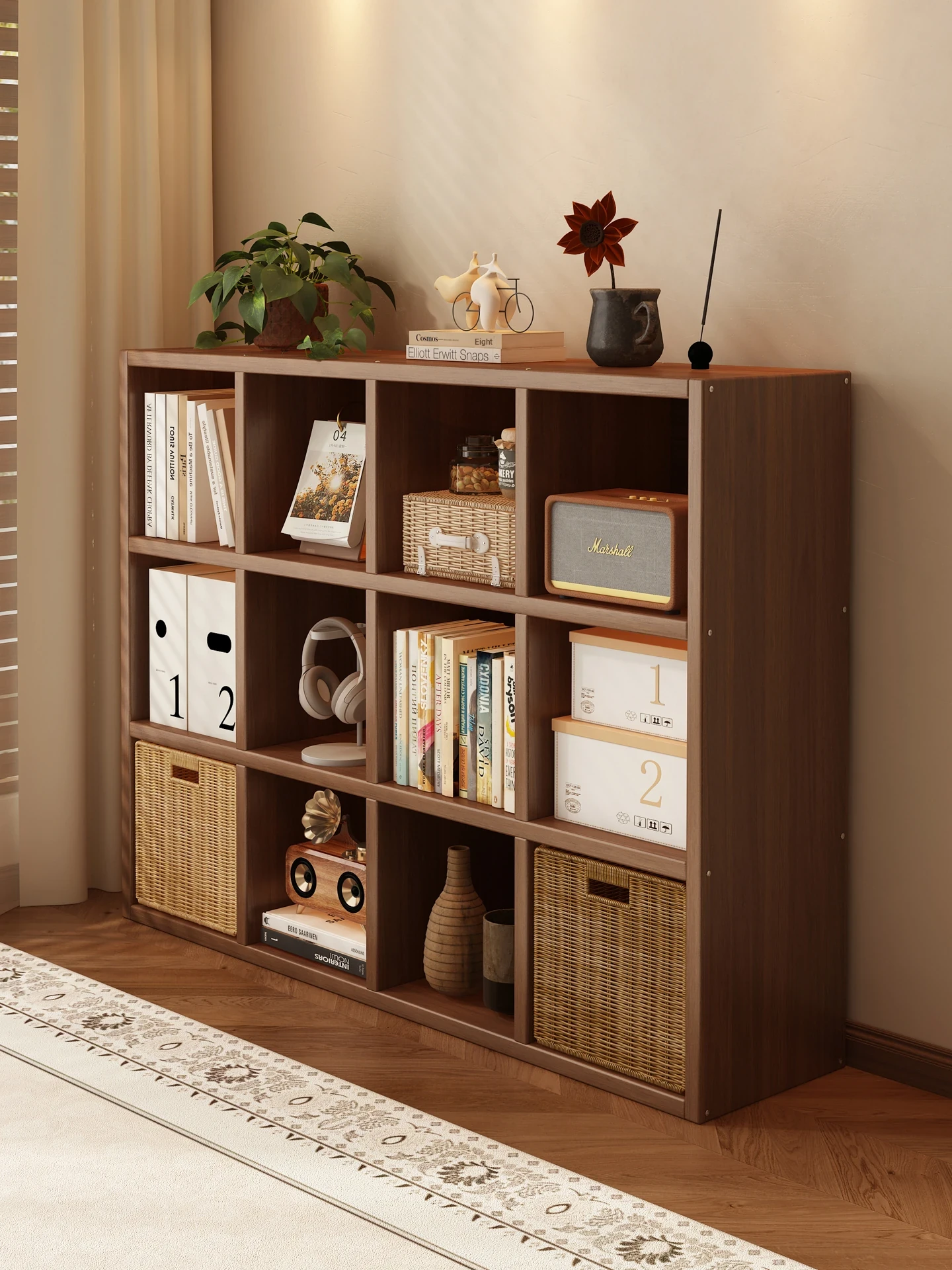 Solid Wood Cube Shelf - Kids' Bookshelf and Floor Storage Unit, Stylish Low Cabinet for Living Room, Simple Bookcase and Storage Solution with Vintage Charm