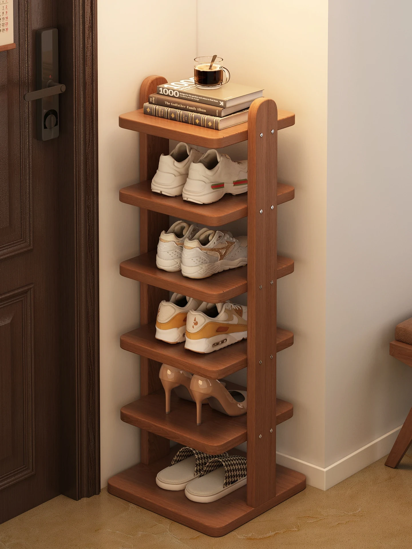 Multi-Layer Solid Wood Shoe Rack - Compact Entryway Narrow Shoe Cabinet for Home Use, Ideal for Organizing Shoes in Small Spaces, Perfect for Indoor Storage Solutions