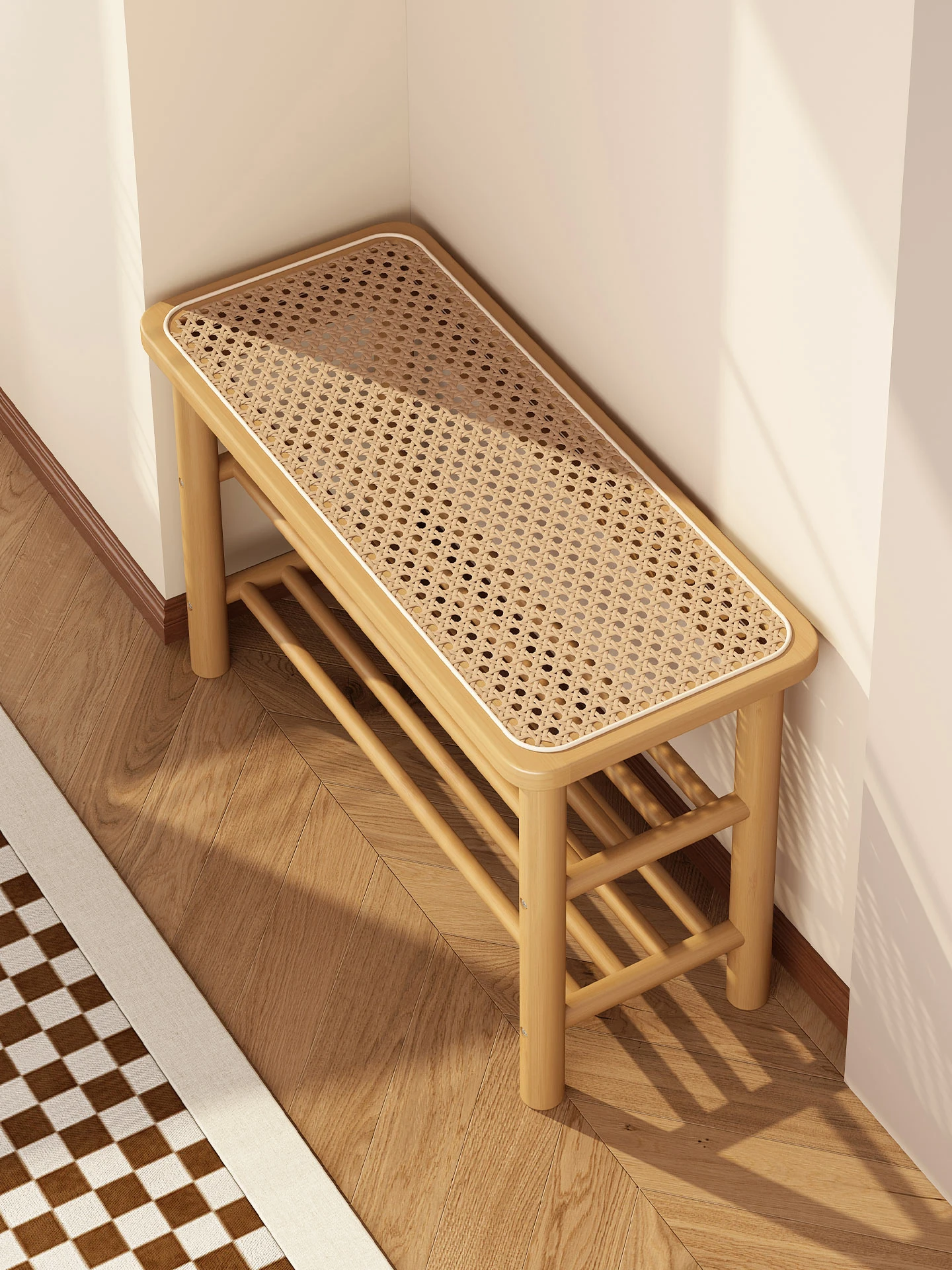 Entryway Shoe Bench - Stylish and Functional Home Entryway Seating with Storage, Woven Rattan Long Bench for Shoes, Perfect for Hallway and Fitting Room Use