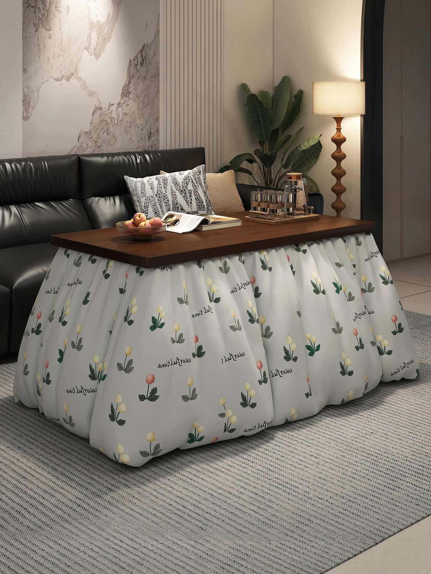 Foldable Home Heating Table - Rectangular Fire Pit Dining Table with Integrated Heater for Cozy Gatherings - Ideal for Family and Friends in Hunan Style