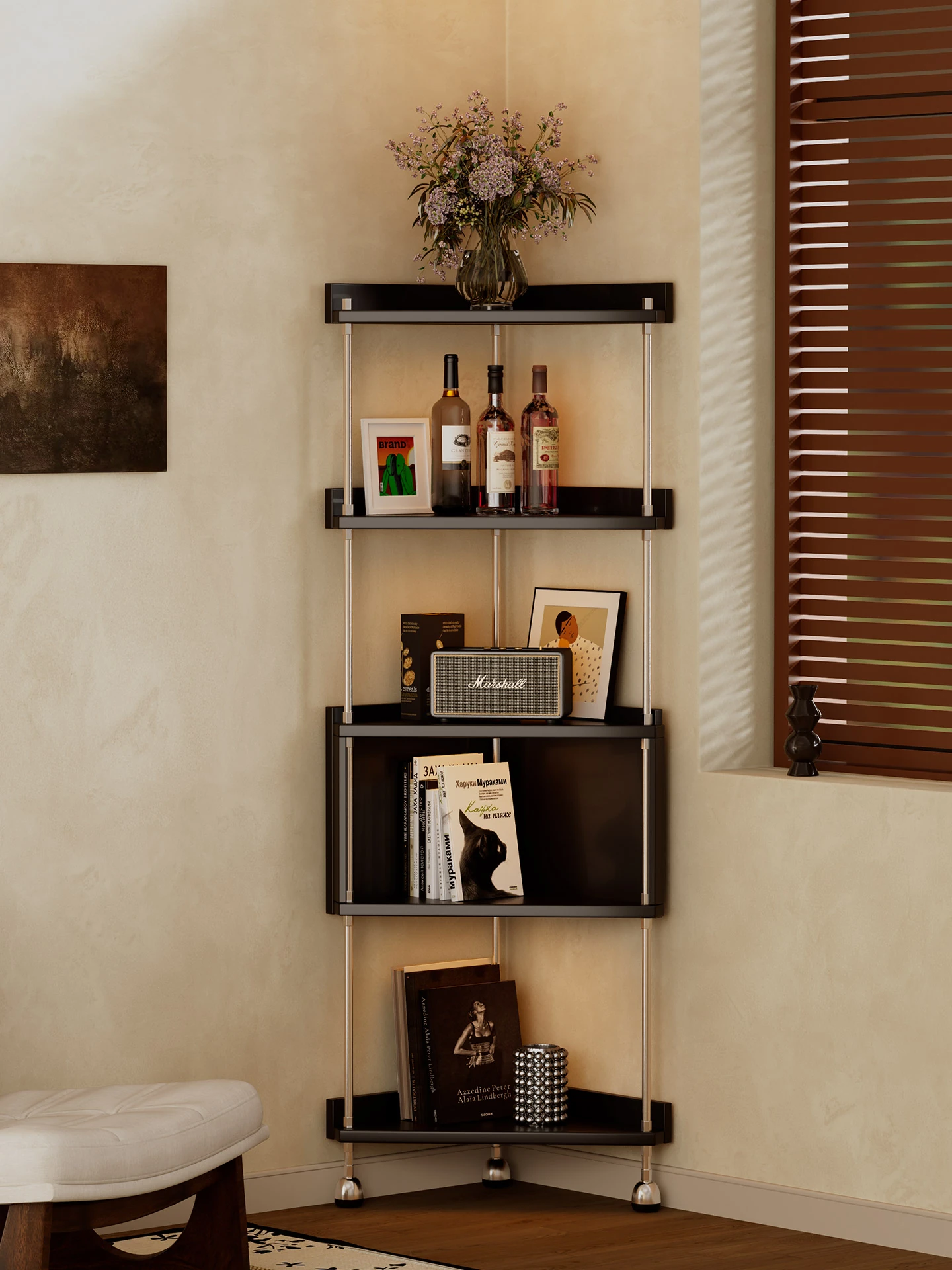 Vintage Corner Shelf Unit – Stylish Corner Cabinet for Living Room & Bedroom – Multi-Functional Storage Organizer – Triangle Bookcase for Smart Space Utilization