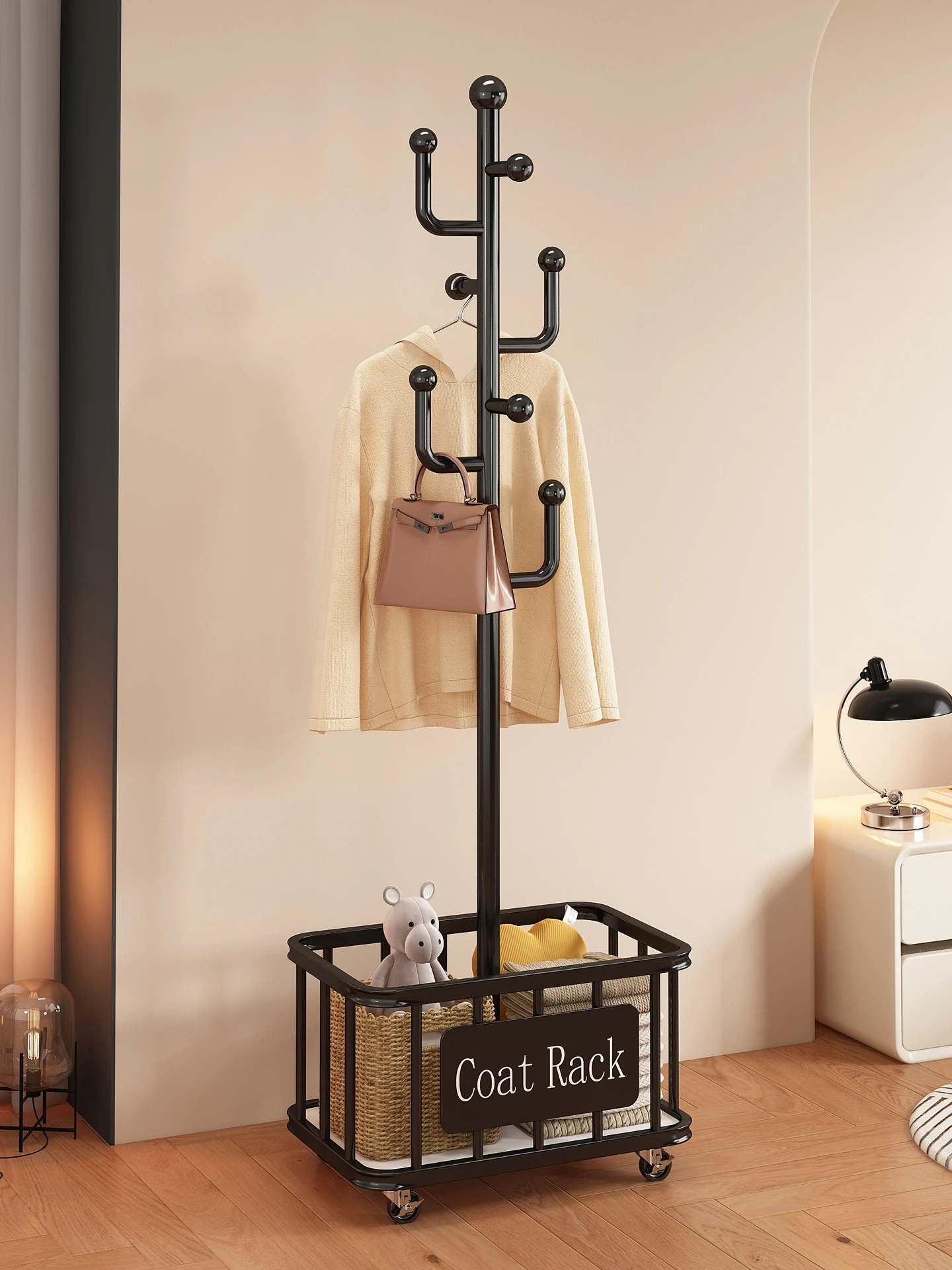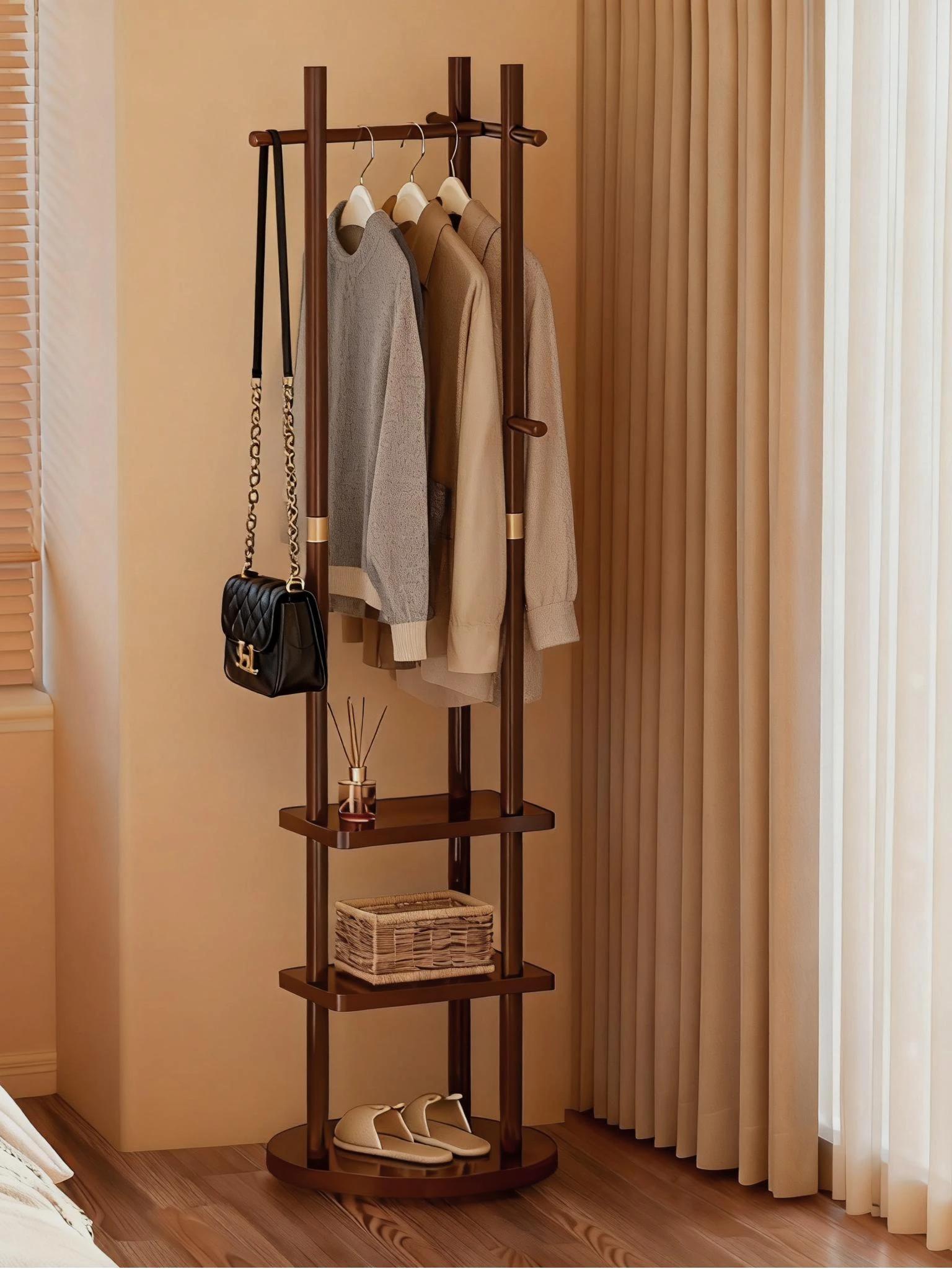 360° Rotating Floor Coat Rack - Space-Saving Clothes Hanger & Storage Solution for Small Bedrooms