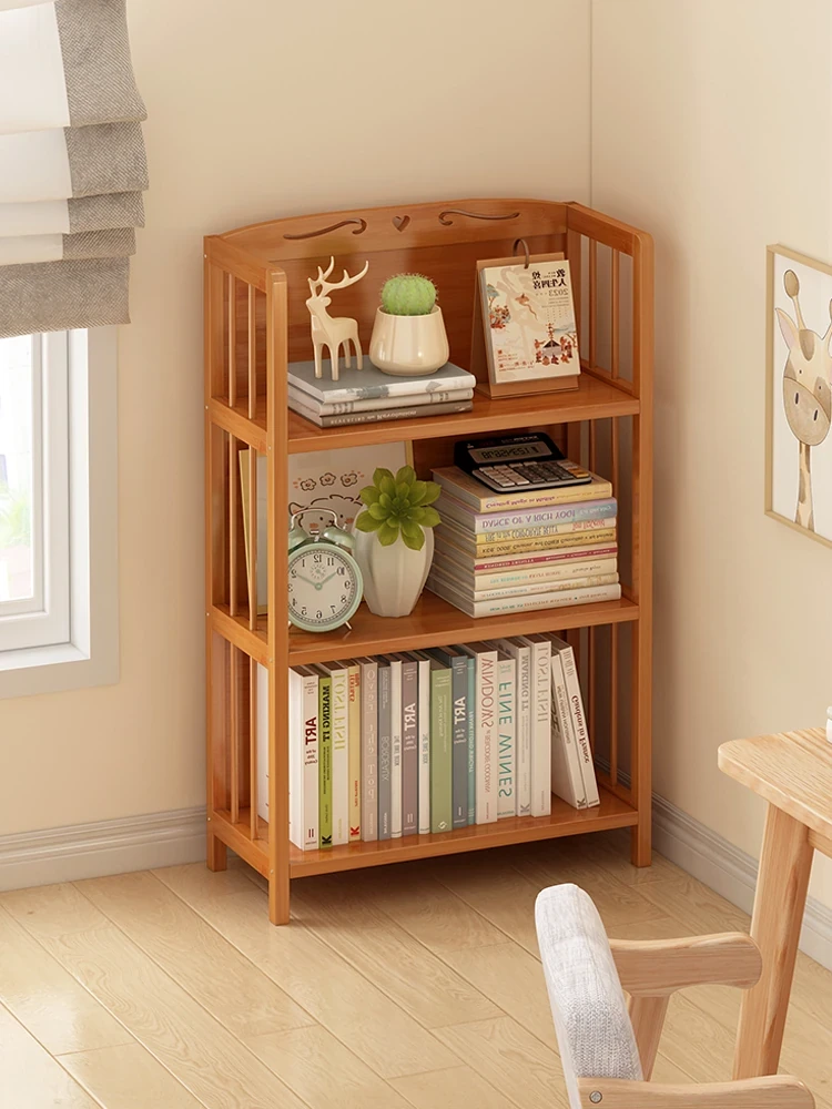 Compact Wall-Mounted Bookshelf and Floor Storage Rack - Versatile Desktop Organizer for Living Room Corners, Ideal Kids' Bookcase for Students and Home Use