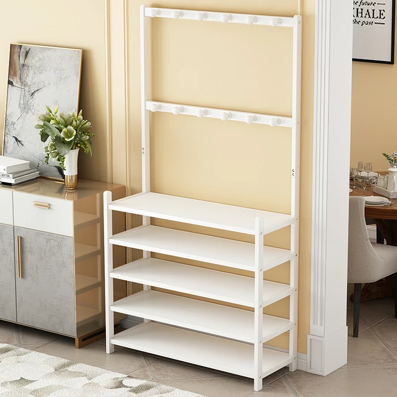Multi-Layer White Wooden Shoe Rack - Space-Saving, Dust-Proof, and Versatile Organizer for Home Use - Perfect for Shoes and Clothes!