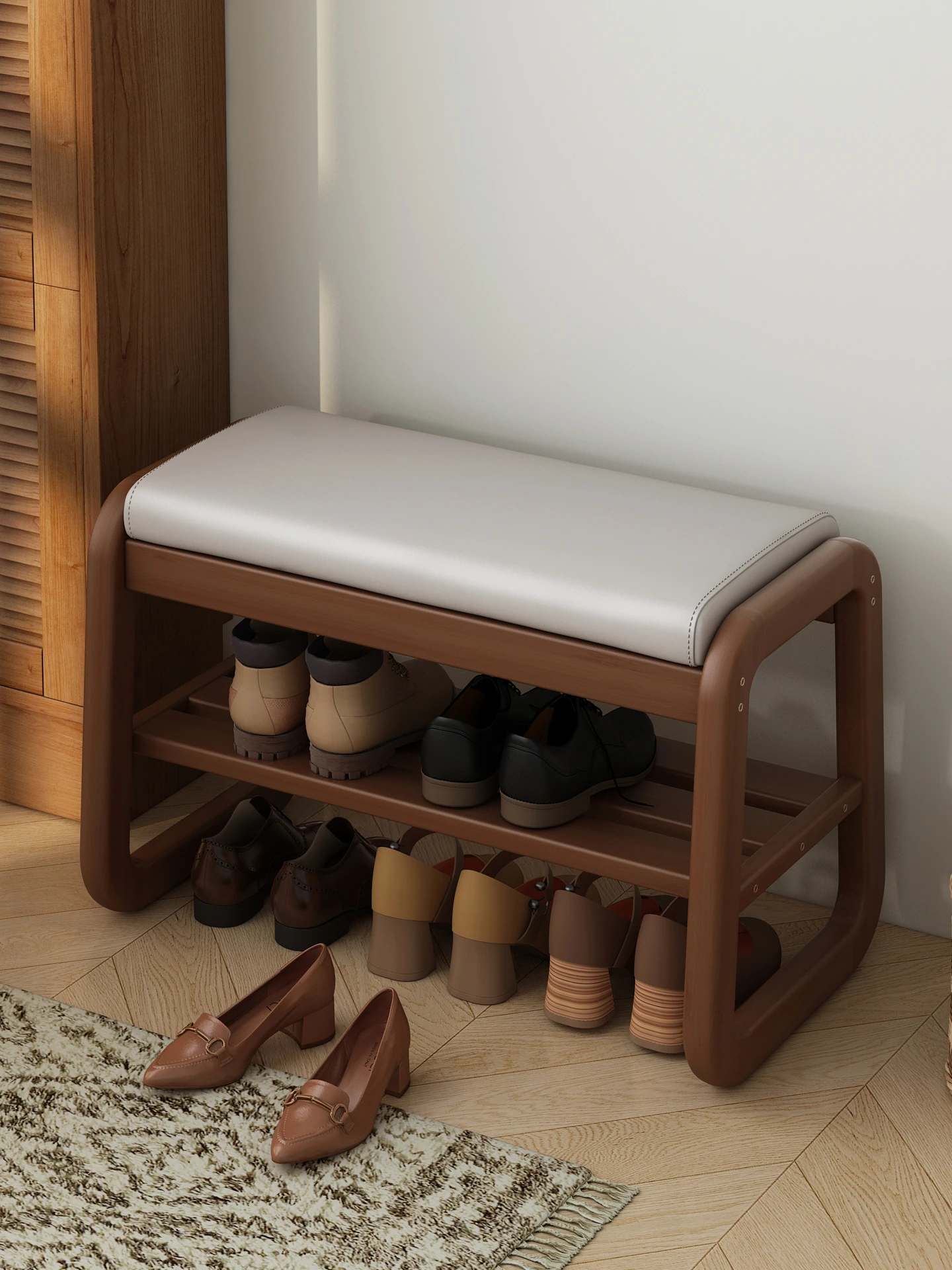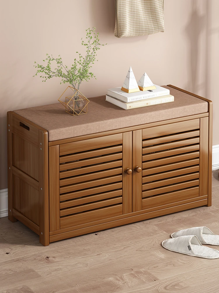 Elegant Solid Wood Shoe Bench with Storage - Entryway Stylish Shoe Cabinet and Sitting Stool, Perfect for Easy Shoe Changing at Home