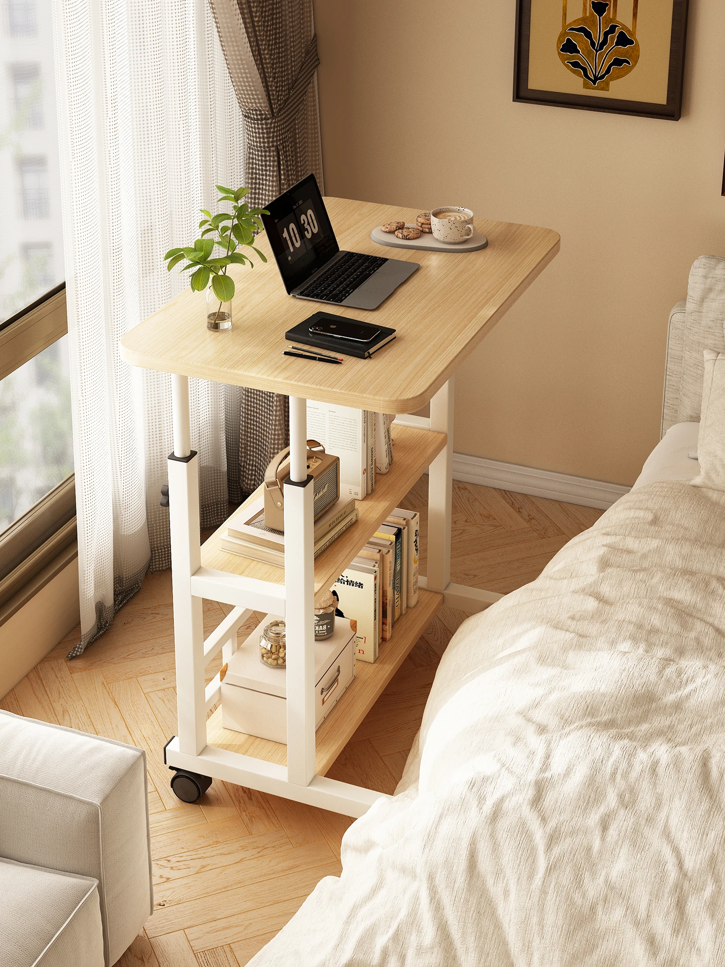 Portable Bedside Computer Desk & Bookshelf - All-in-One Study Table for Students, Perfect for Small Spaces, Ideal for Bedroom Use
