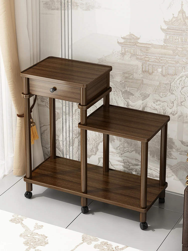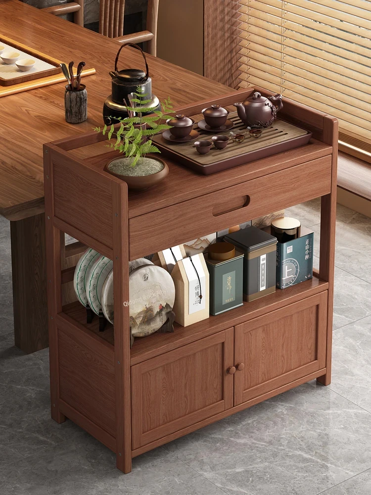 Elegant Solid Wood Side Tea Cabinet for Living Room - Stylish Floor Storage Unit, Perfect for Organizing Tea and Essentials by Sofa, Ideal for Coffee Table Display and Home Décor.
