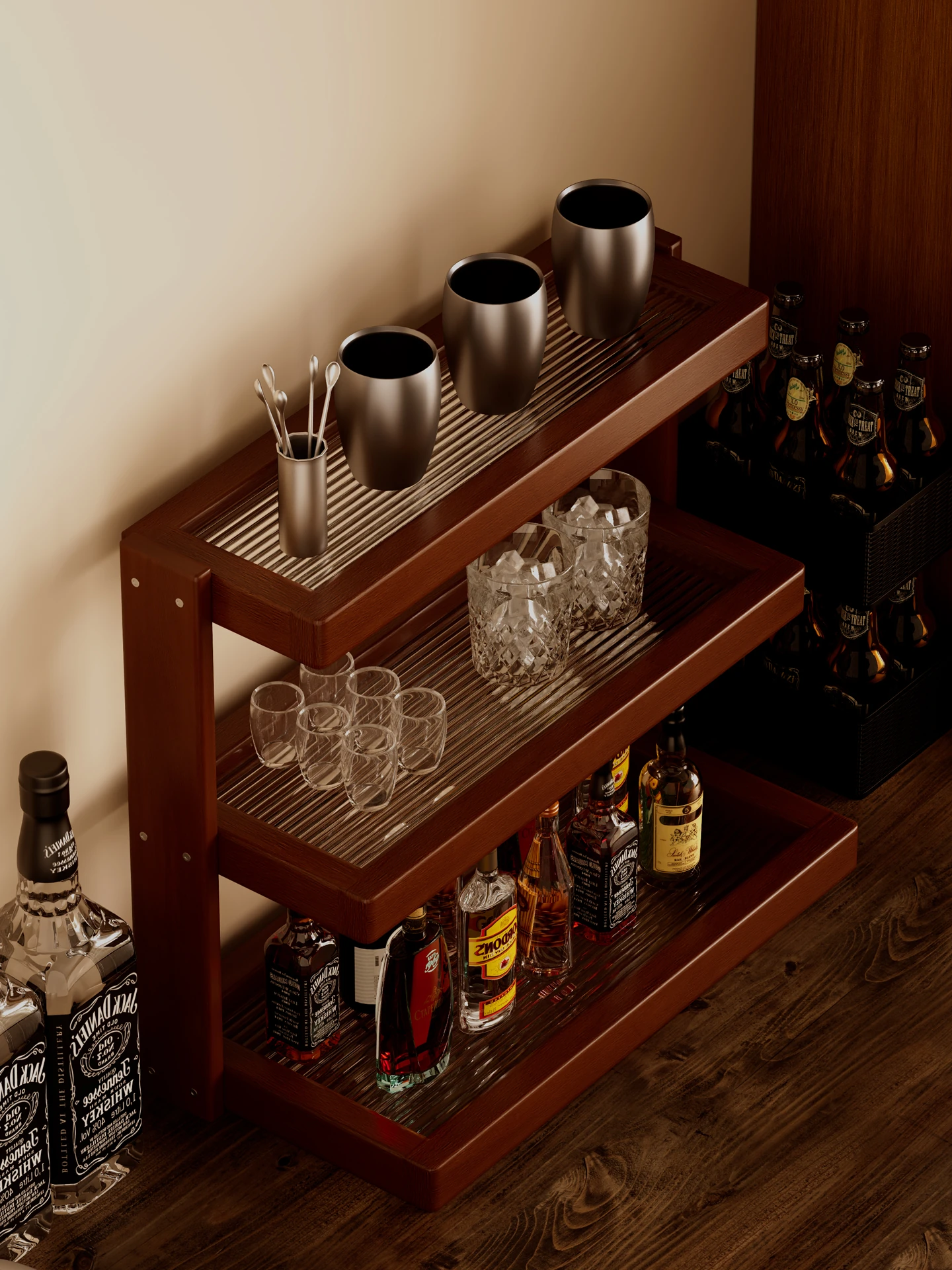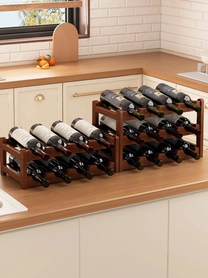 Elegant Solid Wood Desktop Wine Rack - Mini Bar Bottle Display Stand for Spirits, Compact Showcase for Your Favorite Liquor Collection, Perfect for Home or Bar Use!