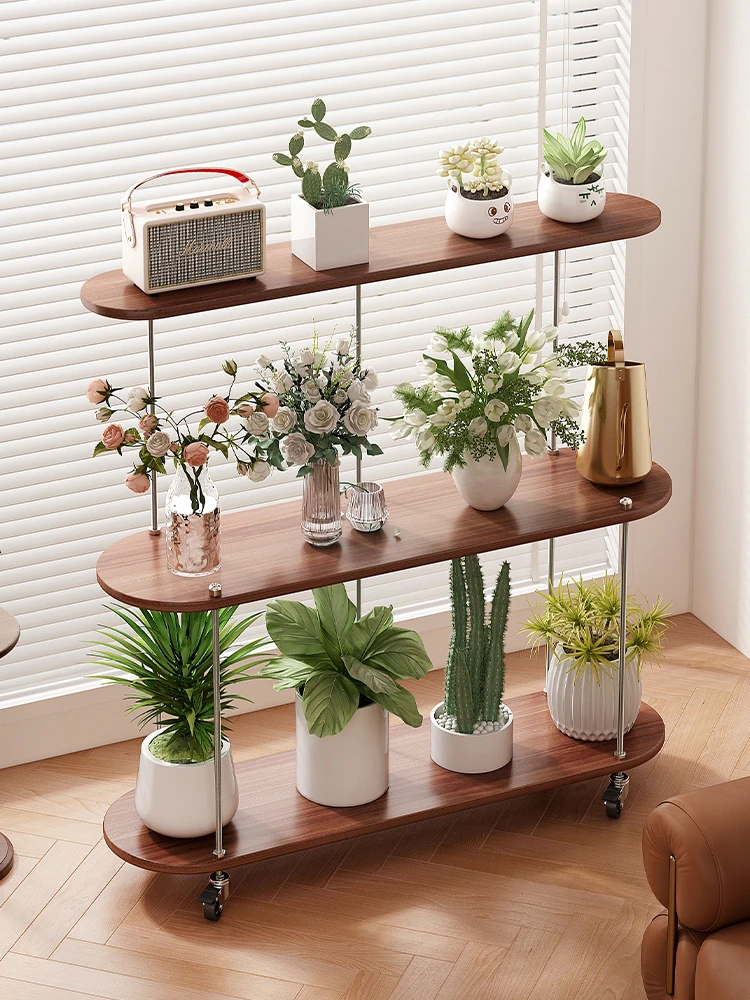 Vintage Style Floor Flower Stand - Mobile Plant Display Rack for Living Room and Balcony, Perfect for Showcasing Greenery and Decorative Plants.