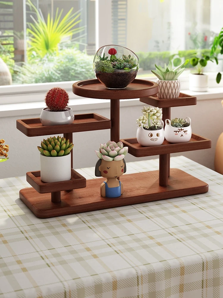 Multi-Layered Solid Wood Succulent Plant Stand - Stylish Indoor Desktop Flower Rack for Living Room, Balcony, and Step-Ladder Design Storage Shelf. Perfect for Plant Lovers!