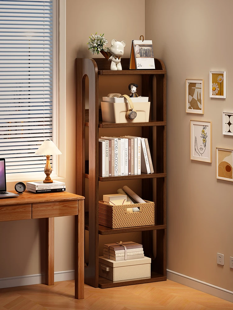 Corner Bookshelf Floor-standing Storage Rack - Stylish Multi-layer Wooden Bookcase for Home Use, Space-saving Wall-mounted Display Cabinet for Bedrooms and Living Rooms