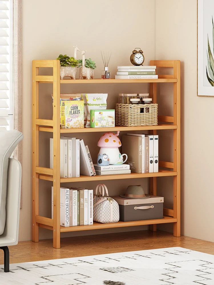 Elegant Solid Wood Bookshelf - Space-Saving Floor Storage Unit for Living Room, Easy-to-Use Wall-Mounted Bookcase with Multi-Layer Organization for Home Use