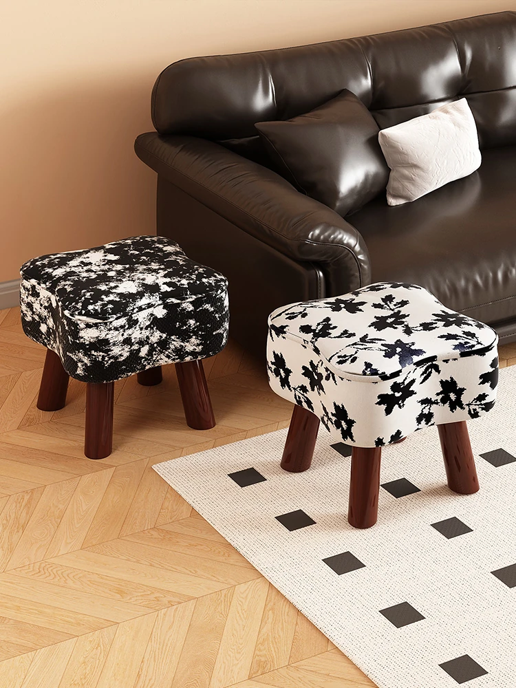 Vintage Wooden Stool - Creative Low Seat for Home, Living Room, and Sofa with Soft Cushion - 2025 New Design