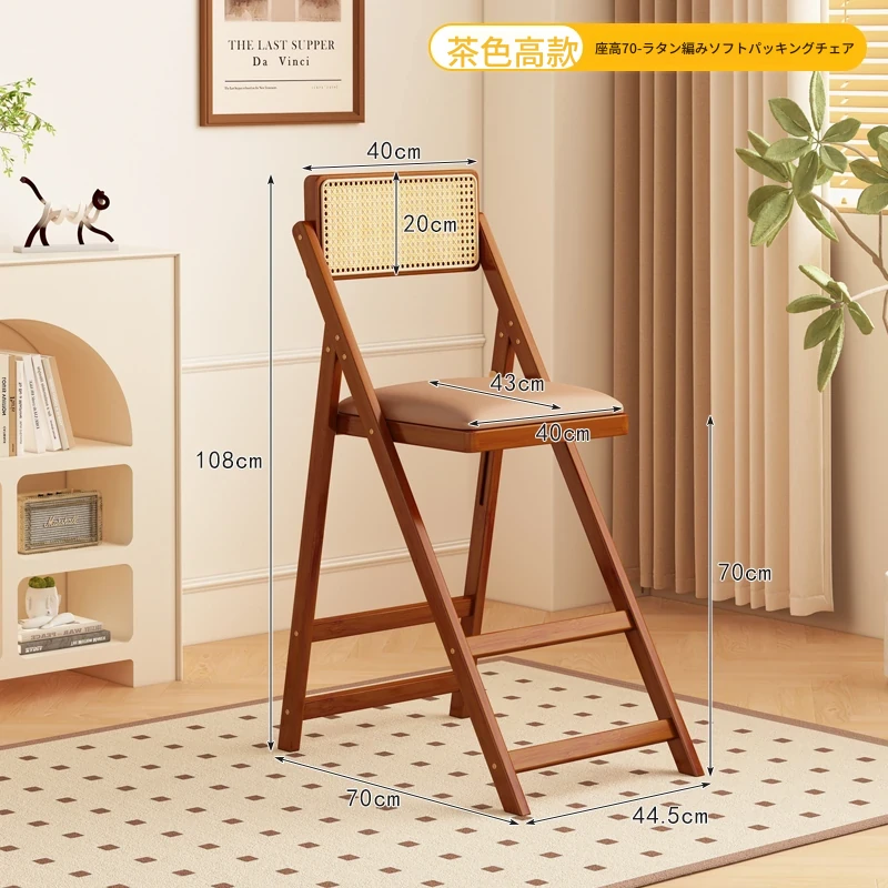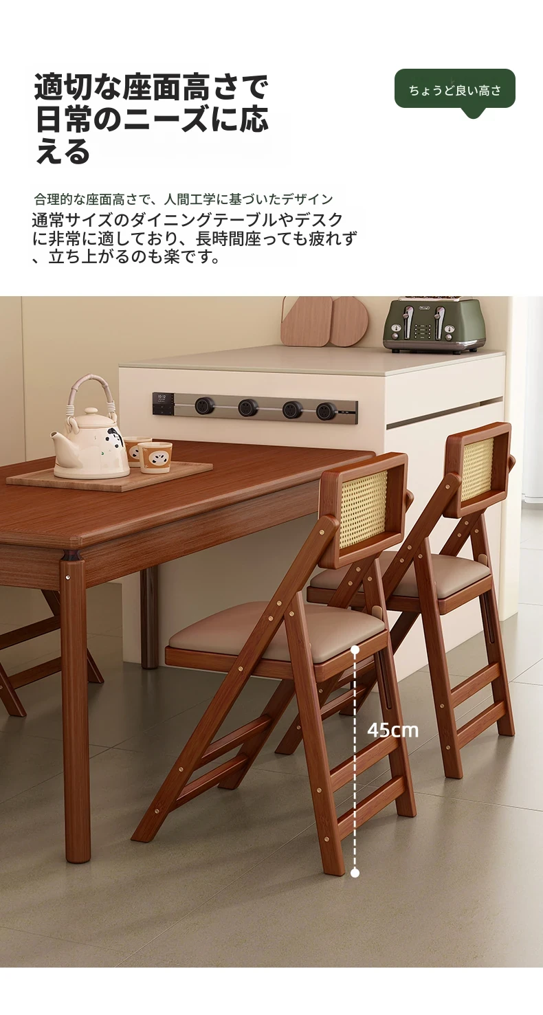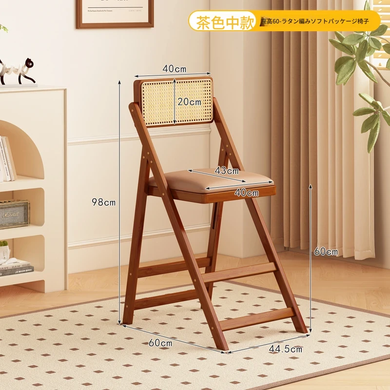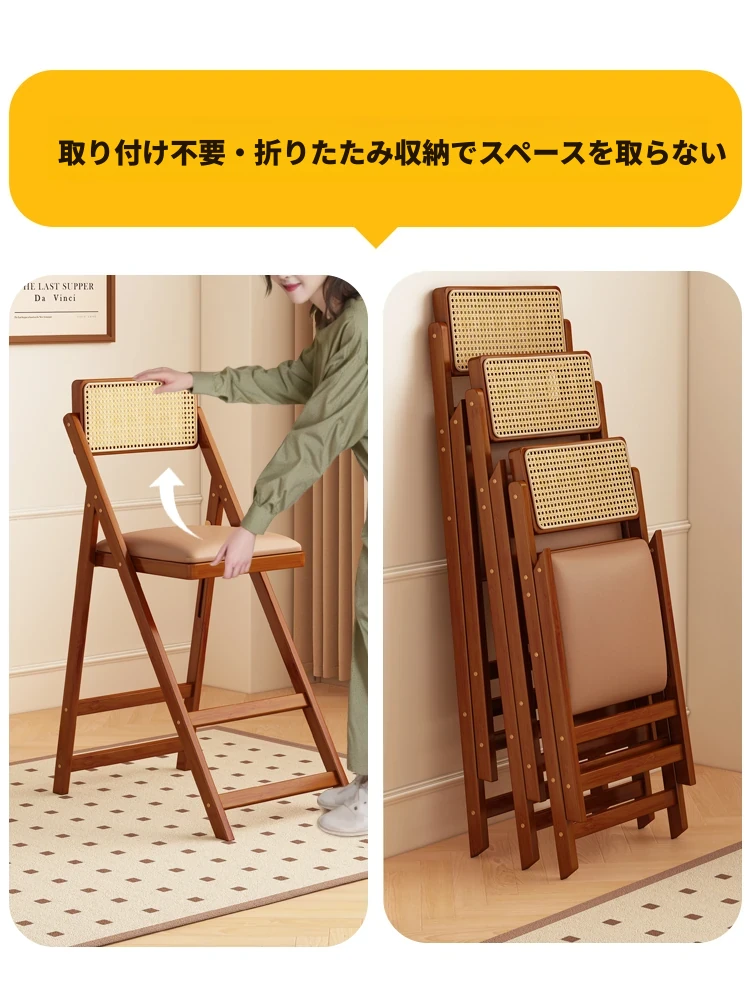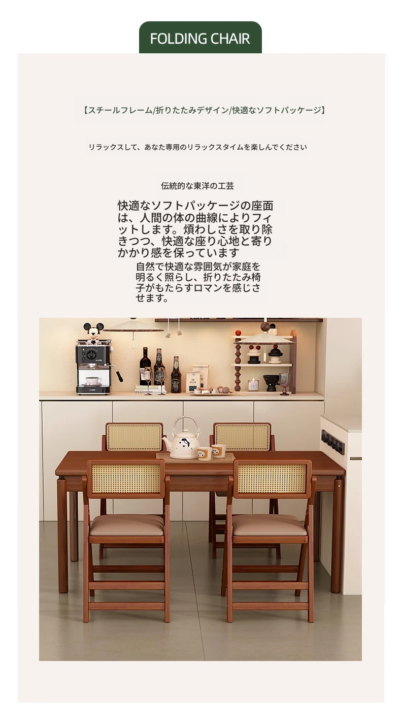 2025年新作!折りたたみ式ダイニングテーブル&チェアセット - モダンでシンプルな高脚スツール、和風のラタン背もたれ付きバーコーナーチェア。省スペースでおしゃれな食卓を演出!