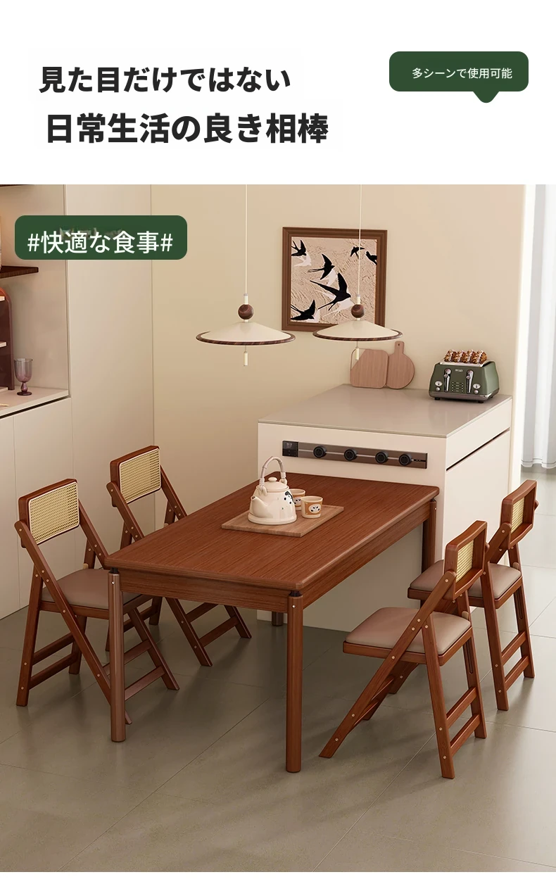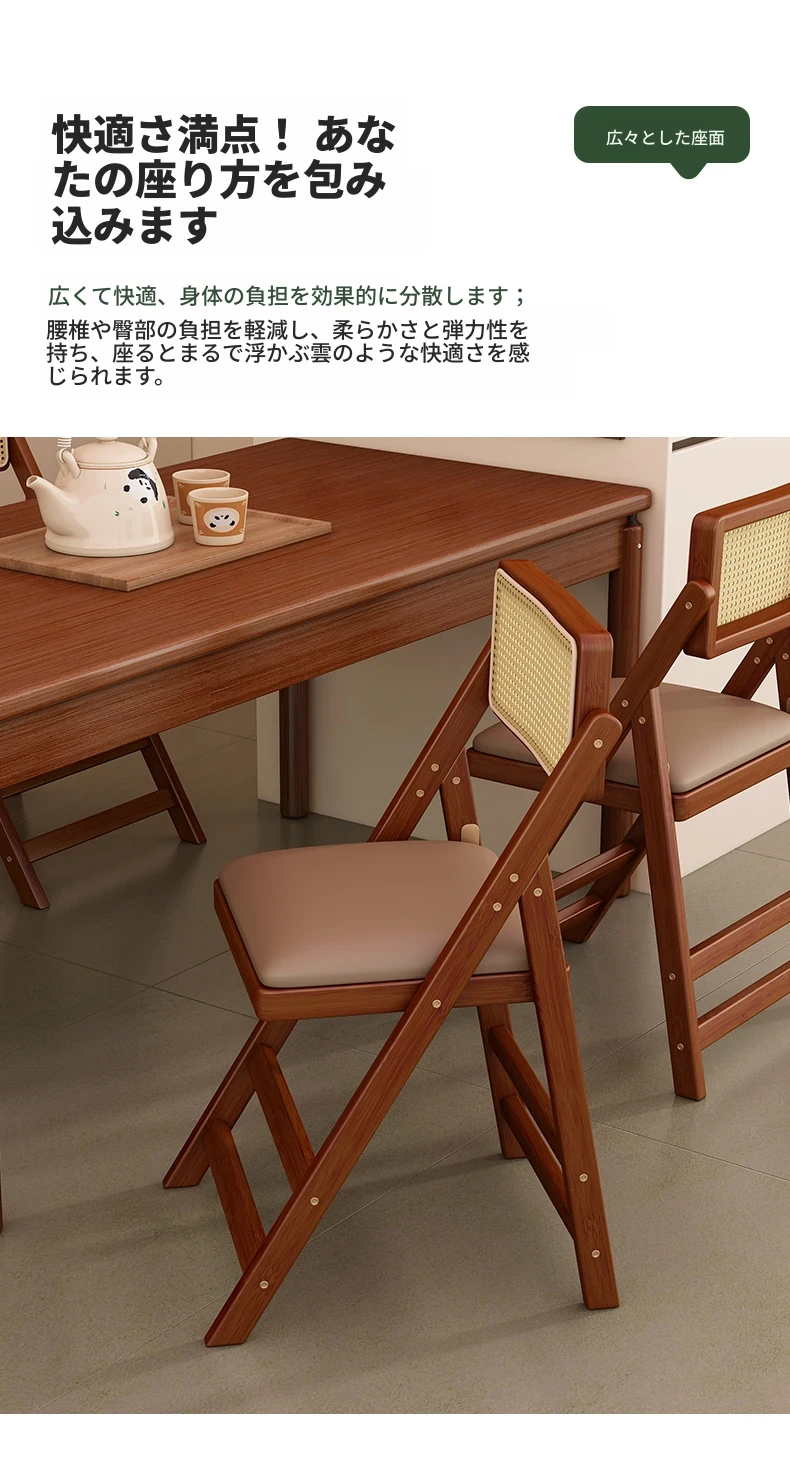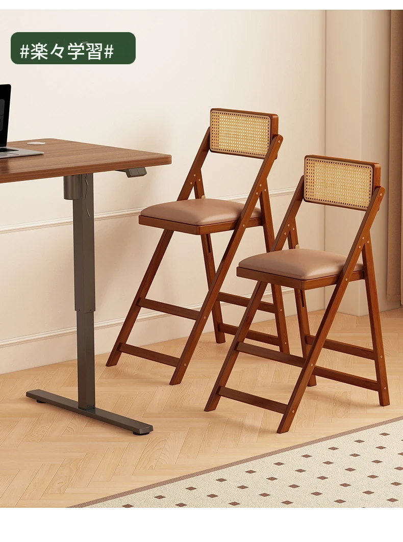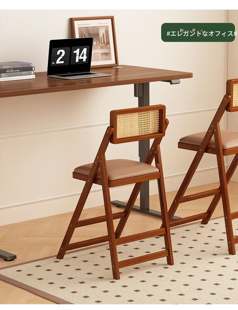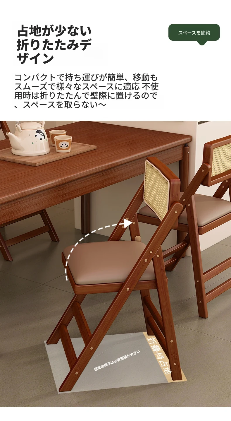 2025年新作!折りたたみ式ダイニングテーブル&チェアセット - モダンでシンプルな高脚スツール、和風のラタン背もたれ付きバーコーナーチェア。省スペースでおしゃれな食卓を演出!