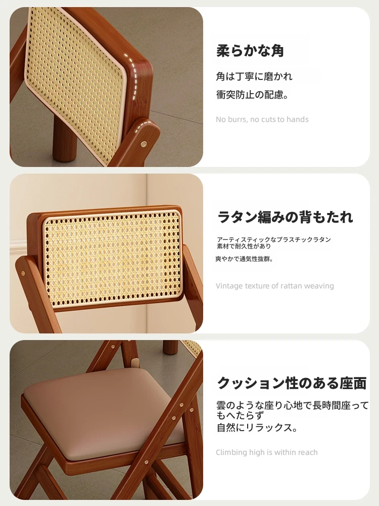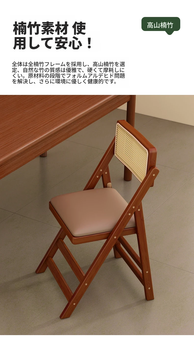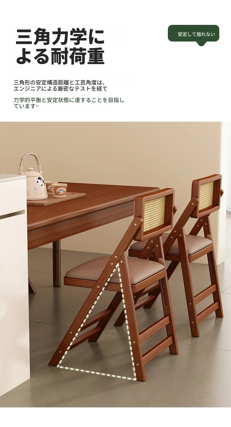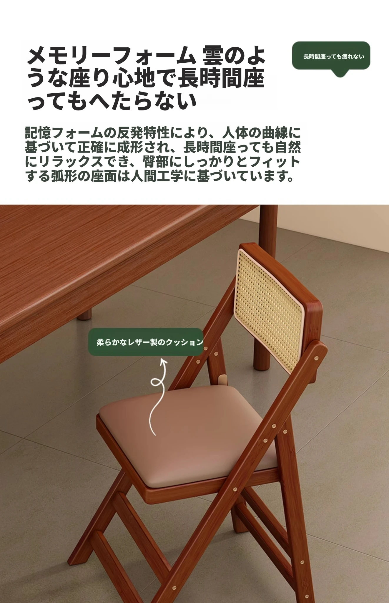 2025年新作!折りたたみ式ダイニングテーブル&チェアセット - モダンでシンプルな高脚スツール、和風のラタン背もたれ付きバーコーナーチェア。省スペースでおしゃれな食卓を演出!