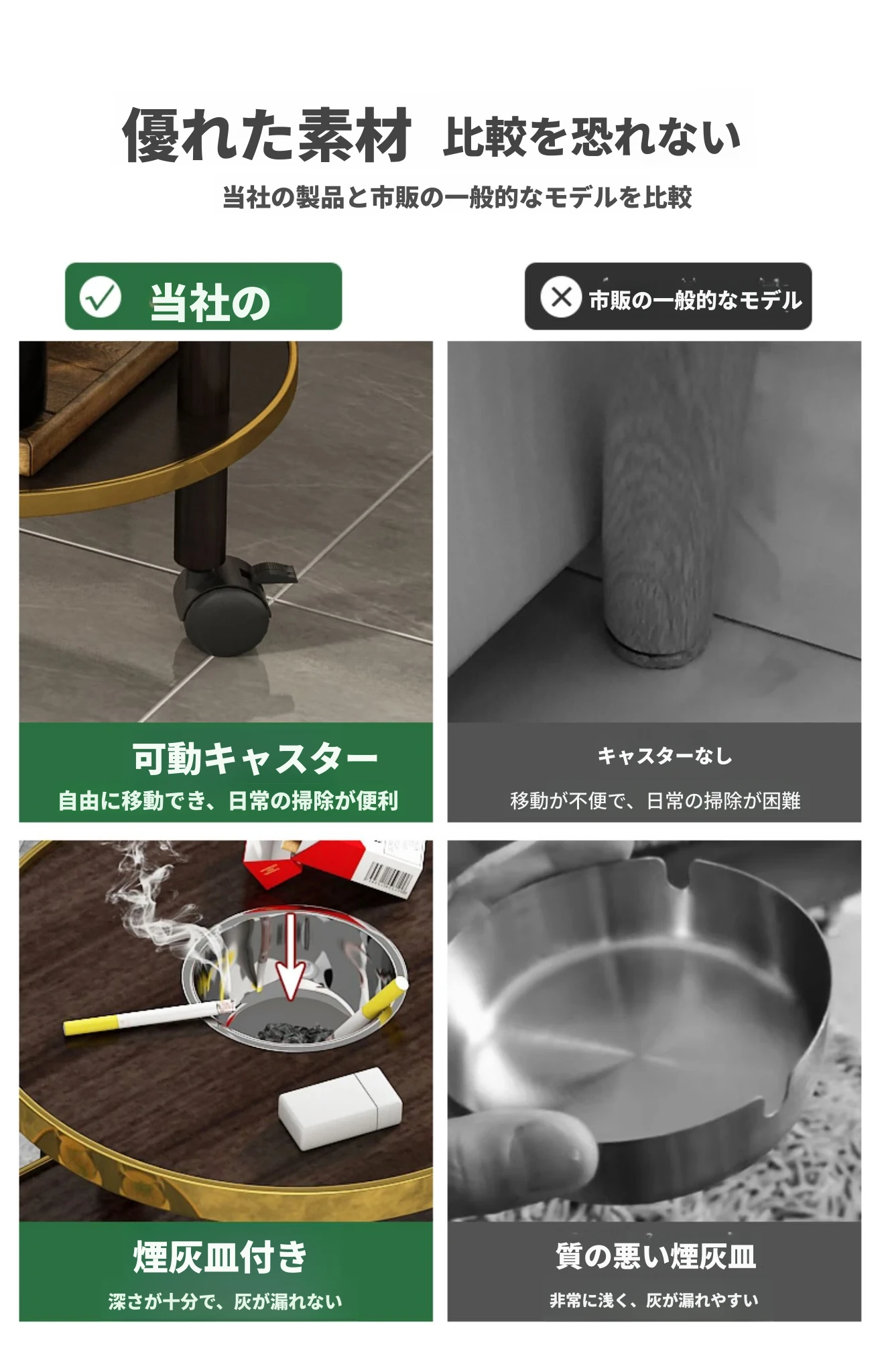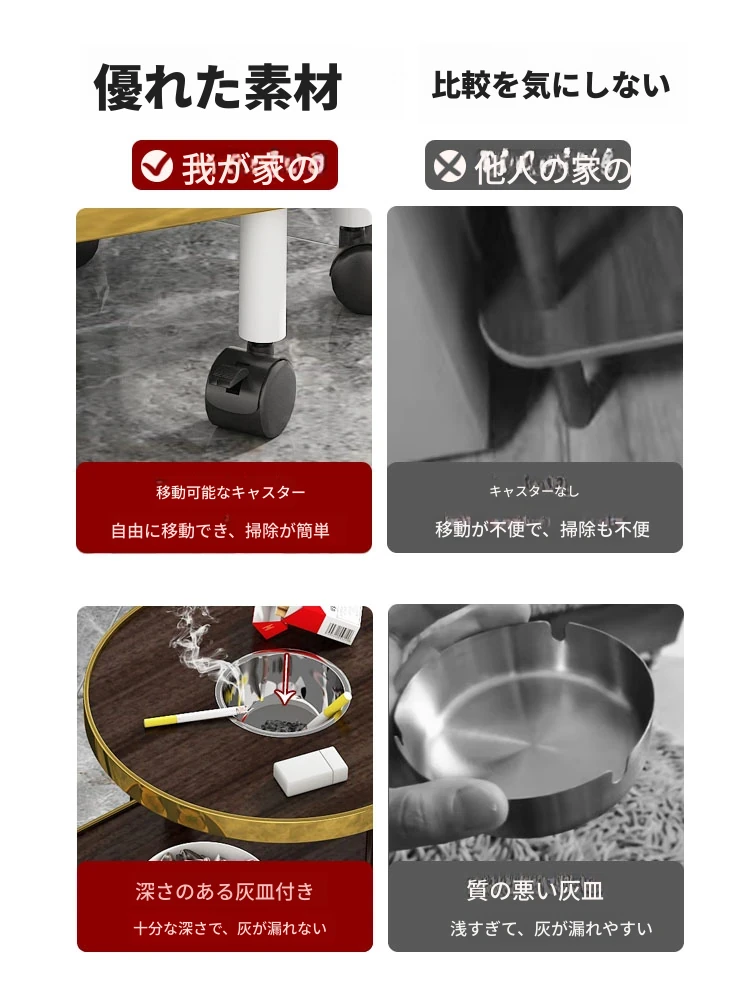 【アップグレード厚手】ホワイト【キャスター付き+灰皿】