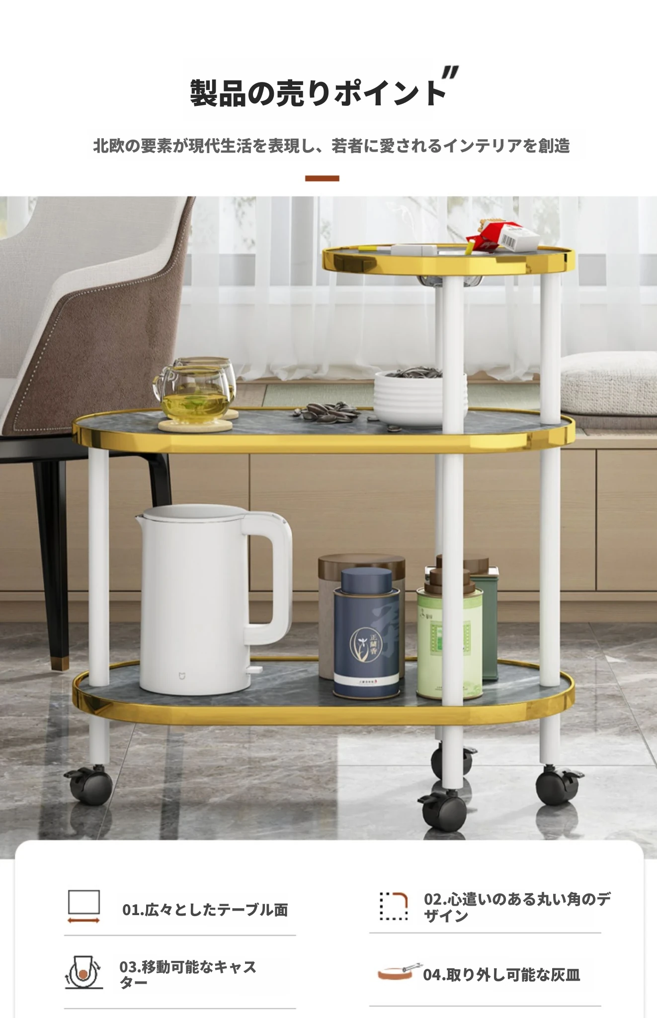 【麻雀テーブルの側に最適なアイテム 移動可能なサイドテーブル】