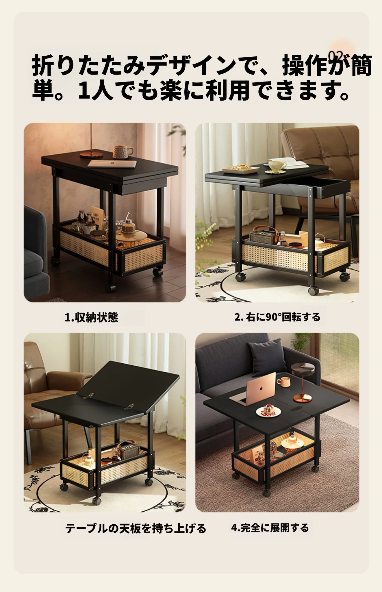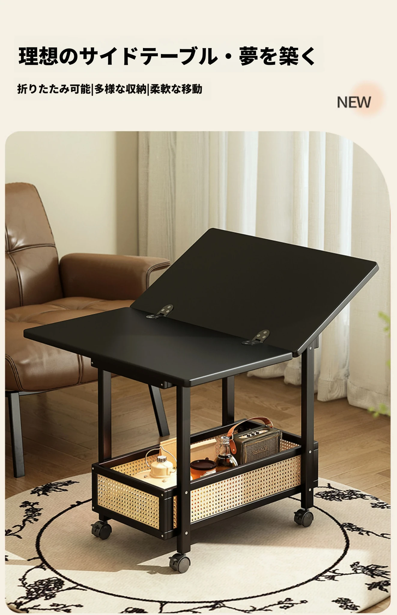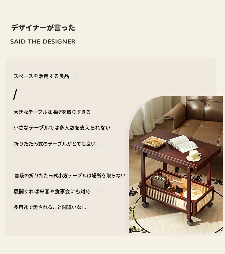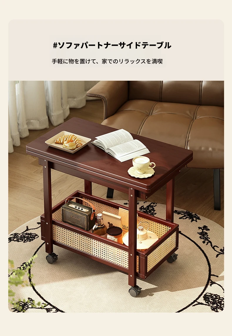 移動式折りたたみテーブル!リビングや寝室にぴったりのミニサイドテーブル。アートコーナーや収納にも最適!使い方は自由自在、スペースを有効活用しておしゃれな空間を演出!