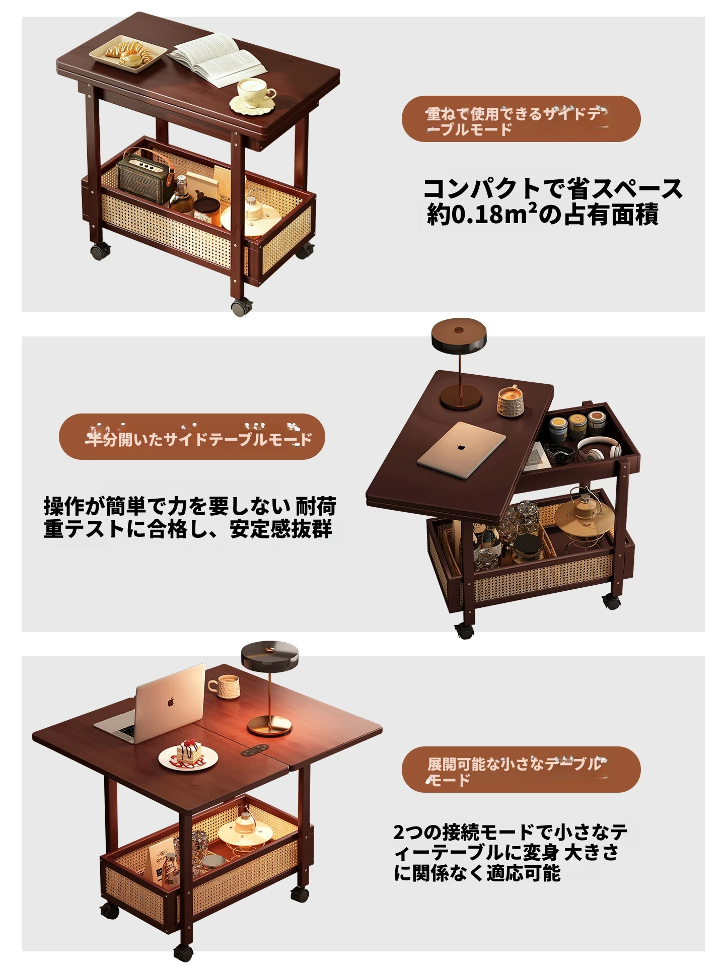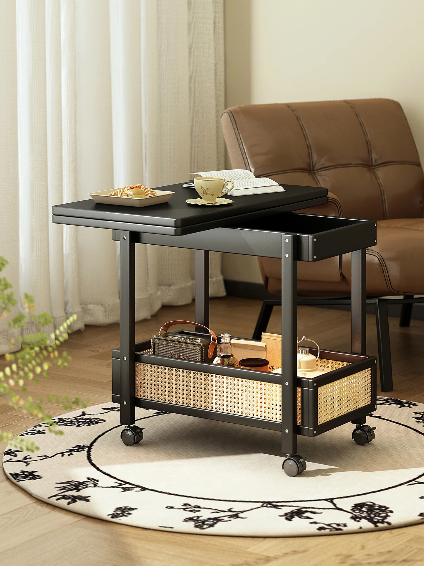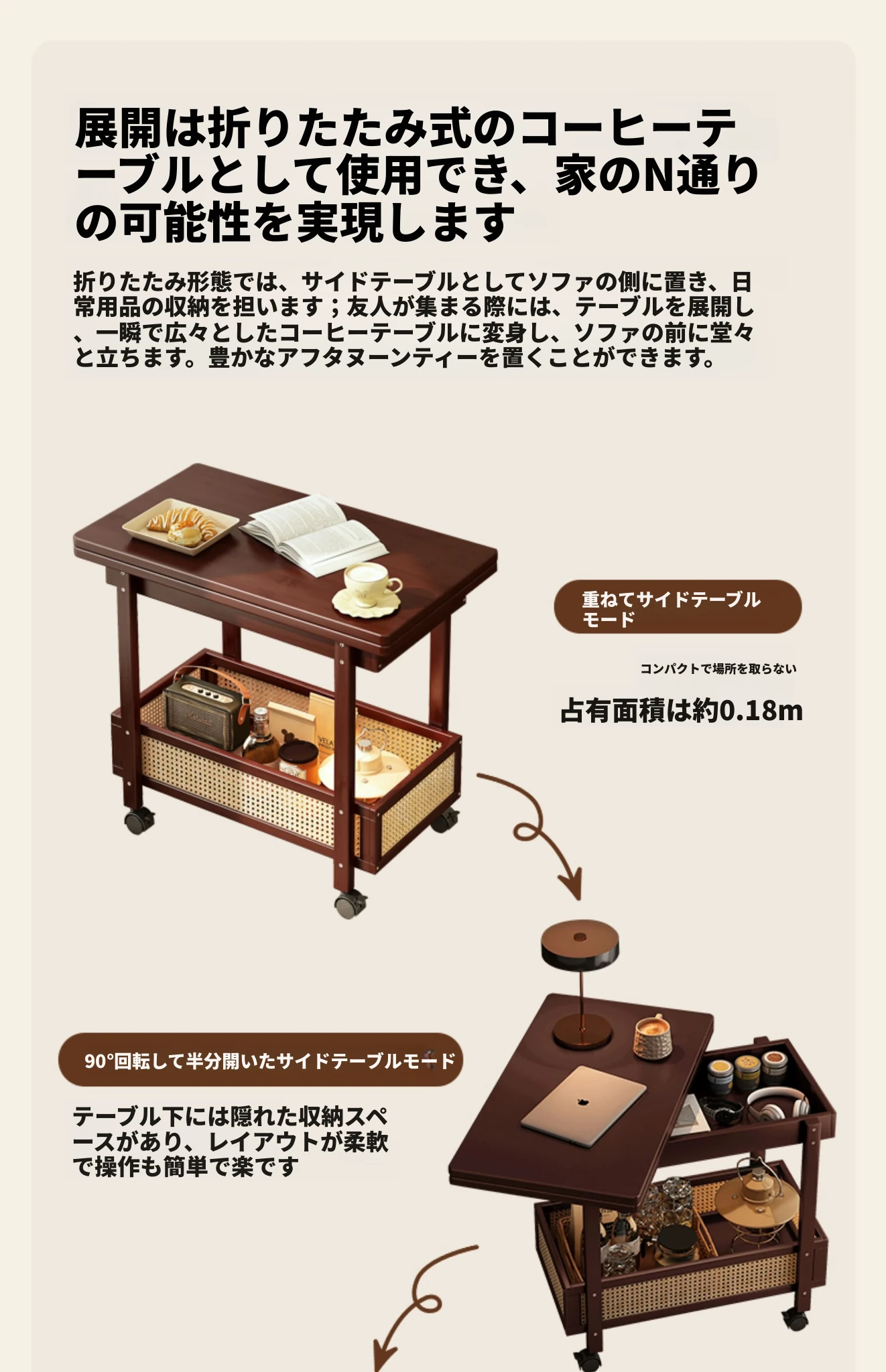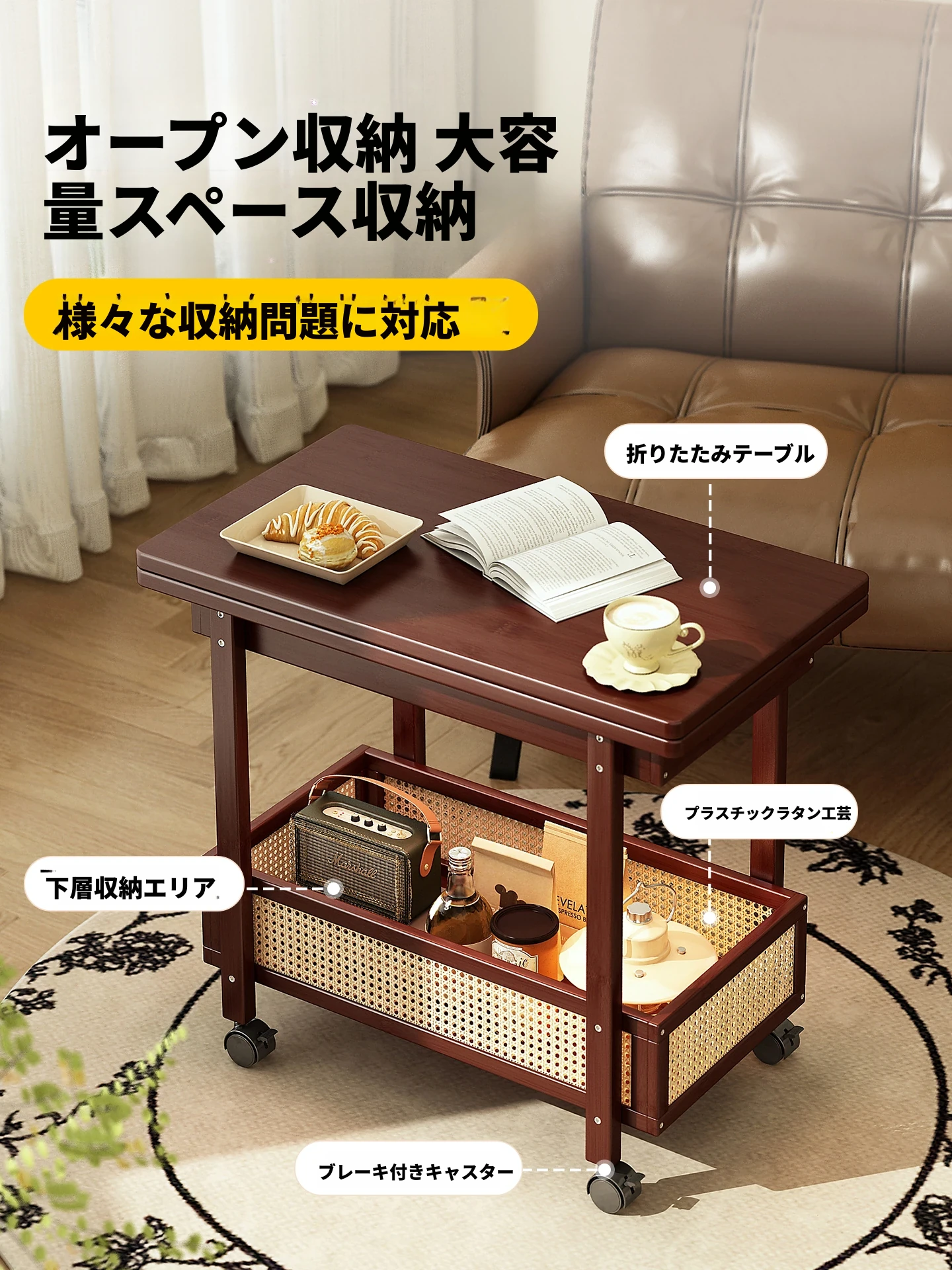 移動式折りたたみテーブル!リビングや寝室にぴったりのミニサイドテーブル。アートコーナーや収納にも最適!使い方は自由自在、スペースを有効活用しておしゃれな空間を演出!