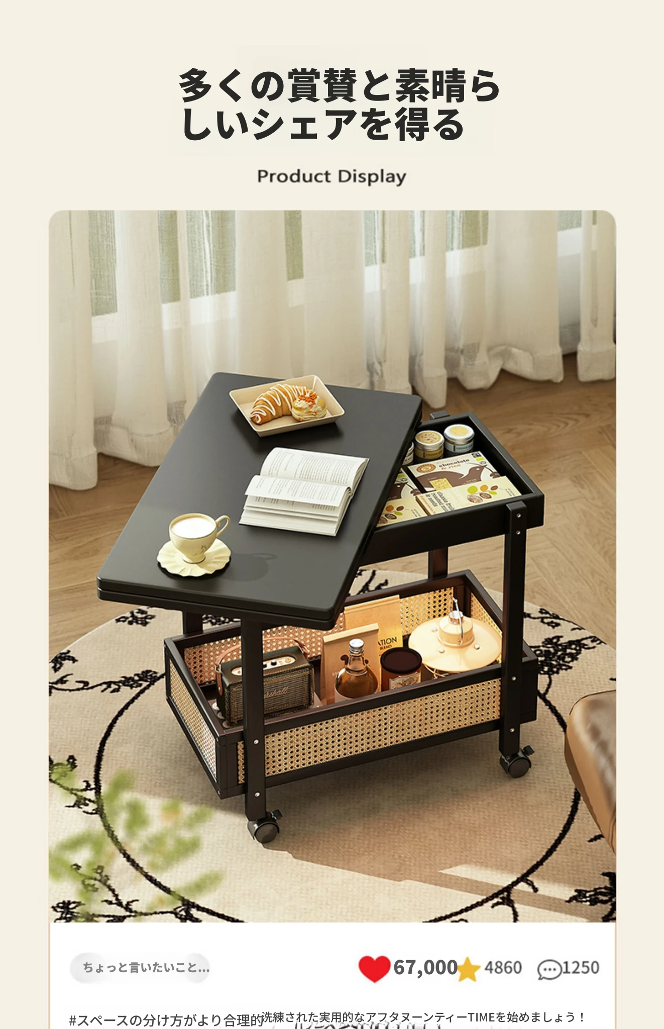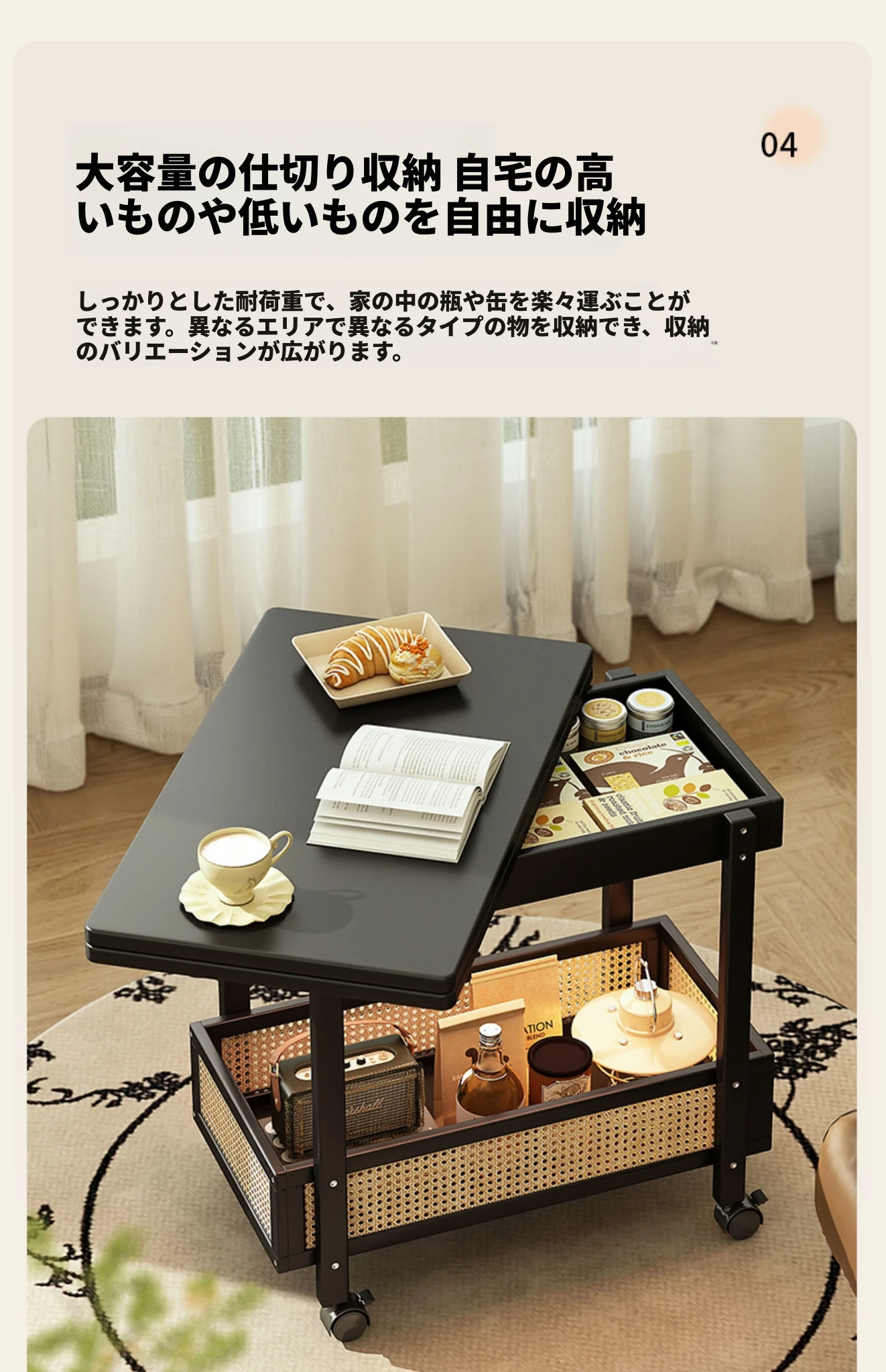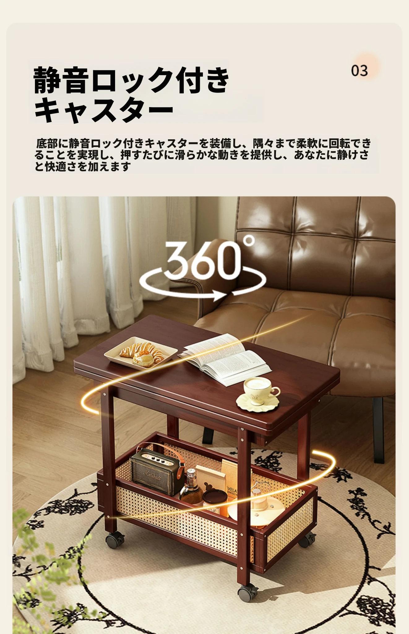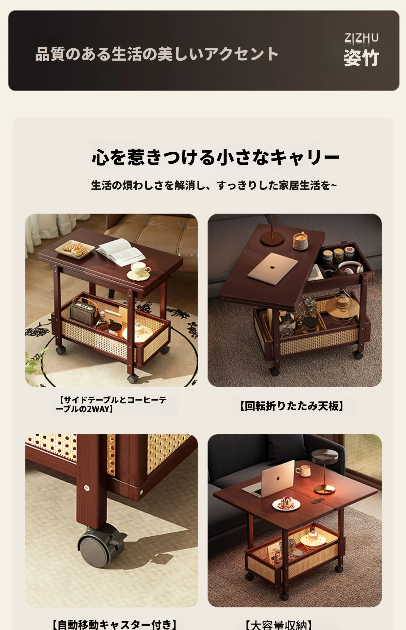 移動式折りたたみテーブル!リビングや寝室にぴったりのミニサイドテーブル。アートコーナーや収納にも最適!使い方は自由自在、スペースを有効活用しておしゃれな空間を演出!