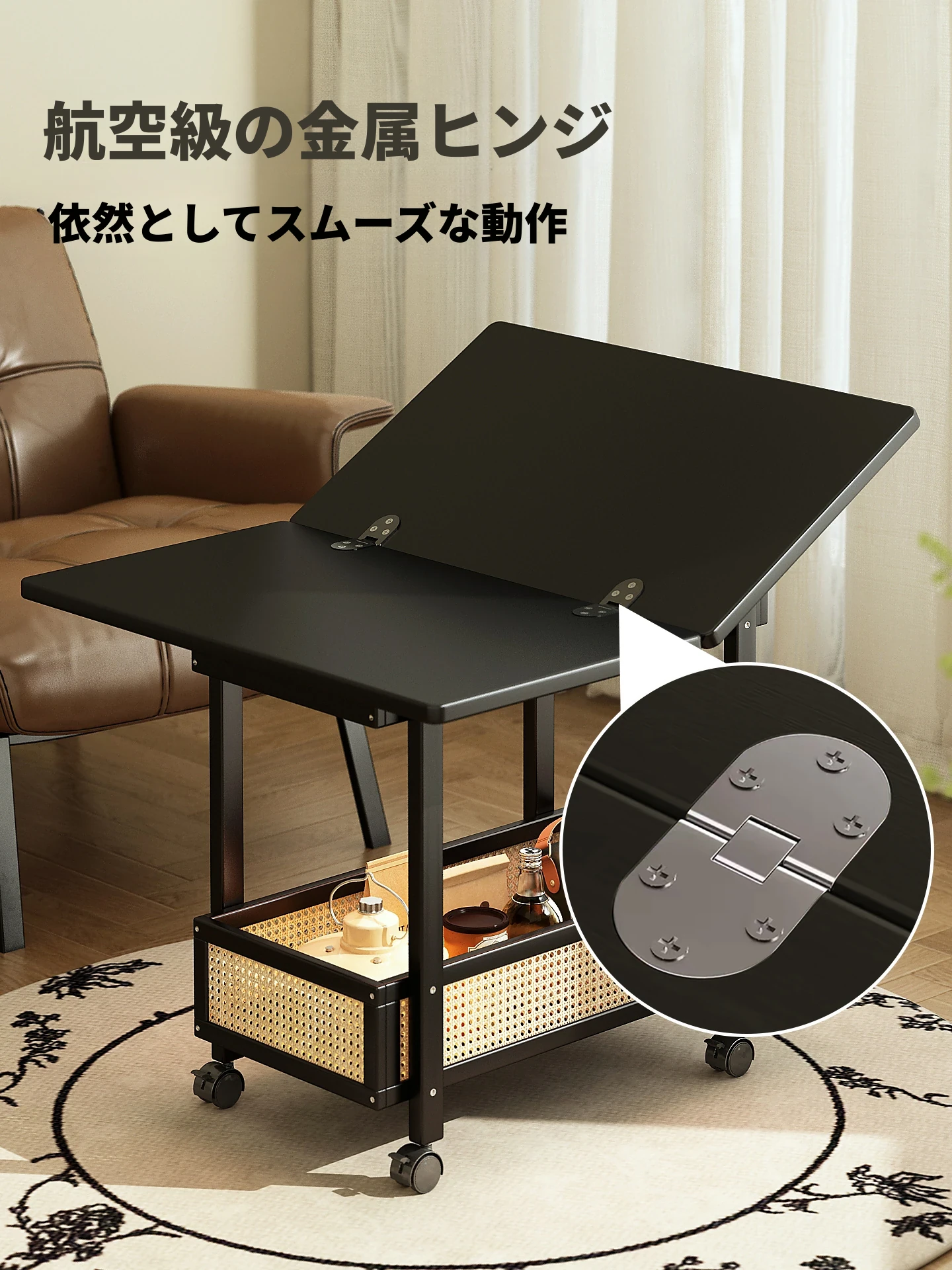 【ジェントルブラック】⭐移動可能な折りたたみサイドテーブル⭐10年保証
