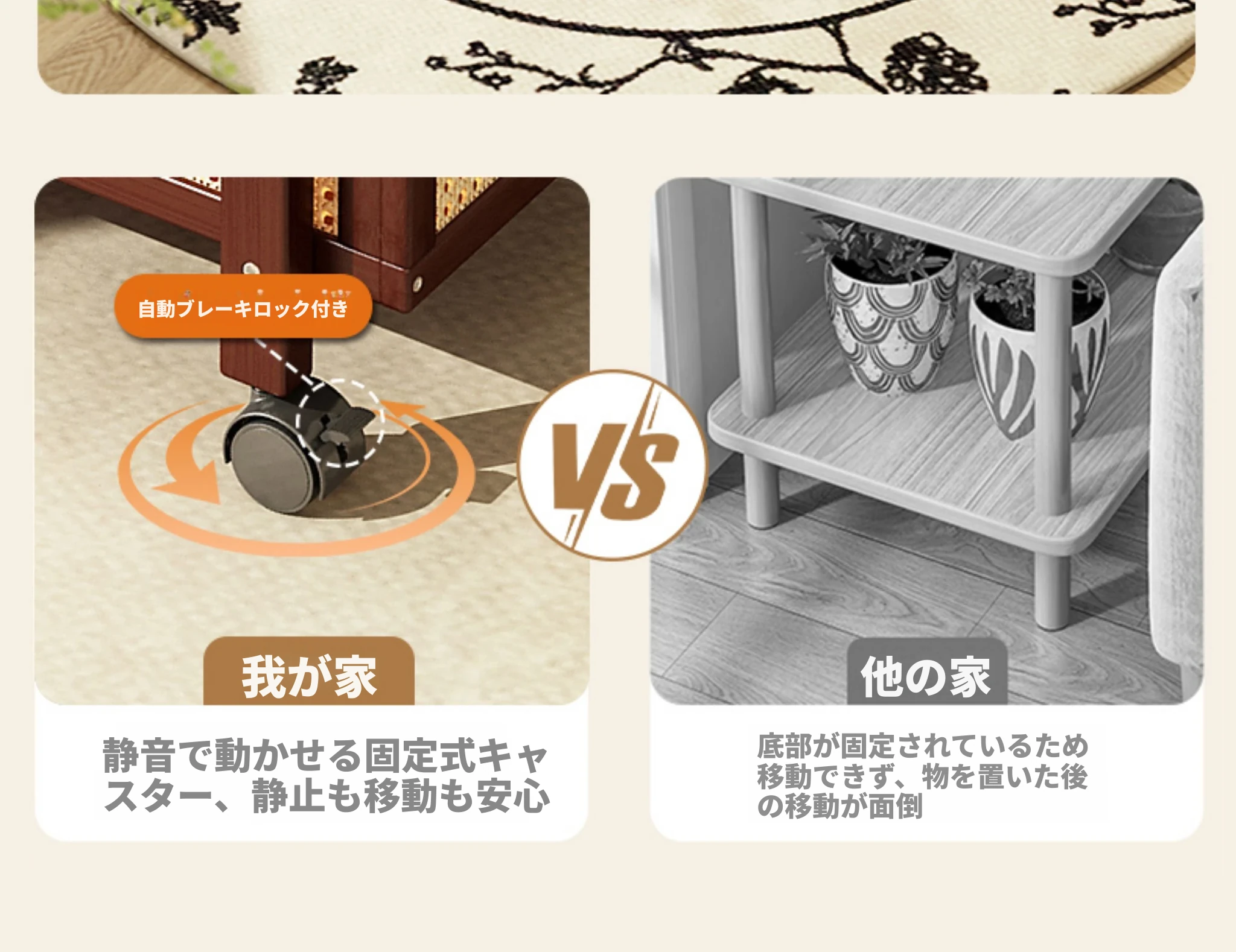 【クリームホワイト】⭐移動可能な折りたたみサイドテーブル⭐10年保証