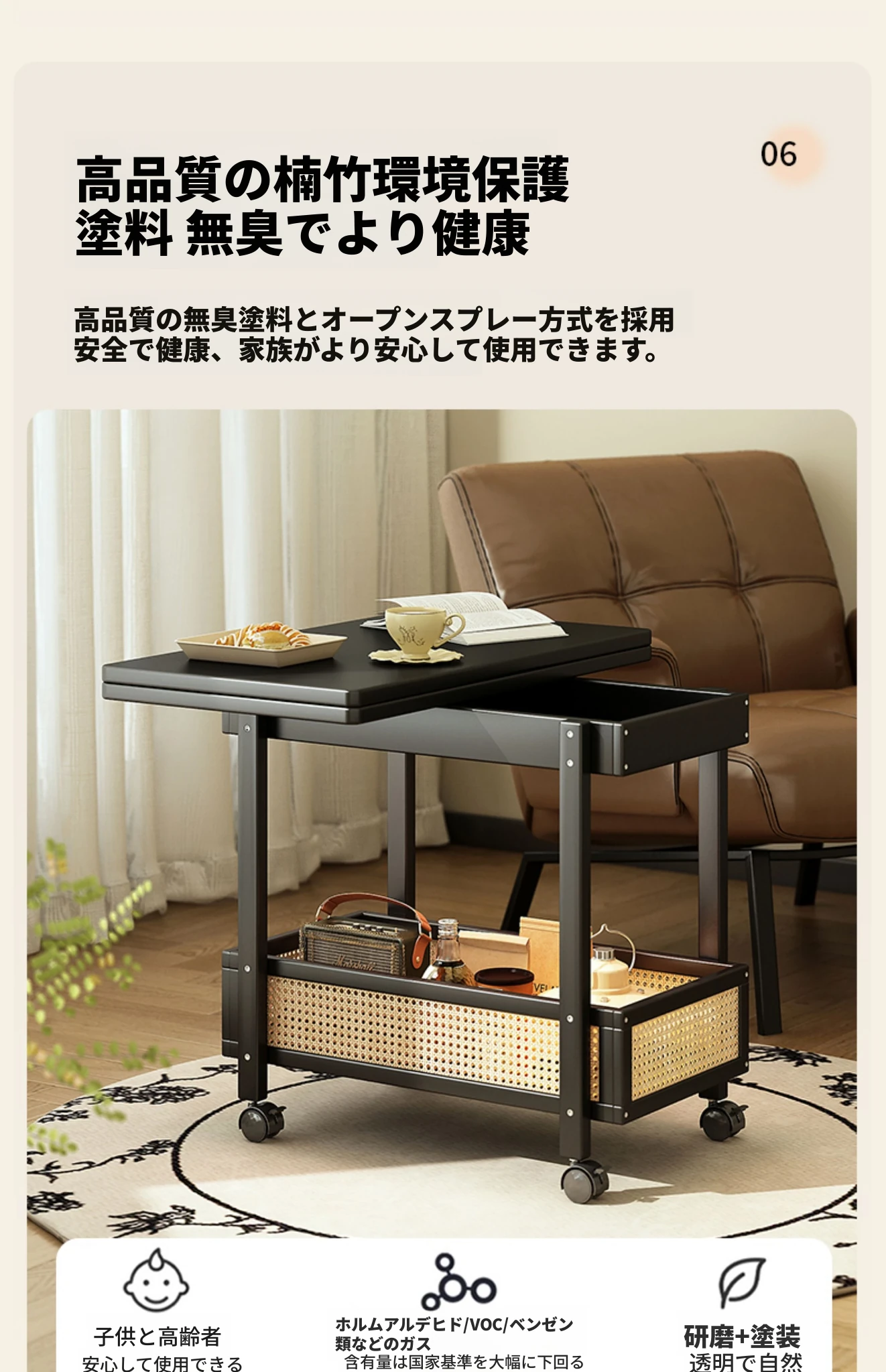【カメリアカラー】⭐移動可能な折りたたみサイドテーブル⭐10年保証