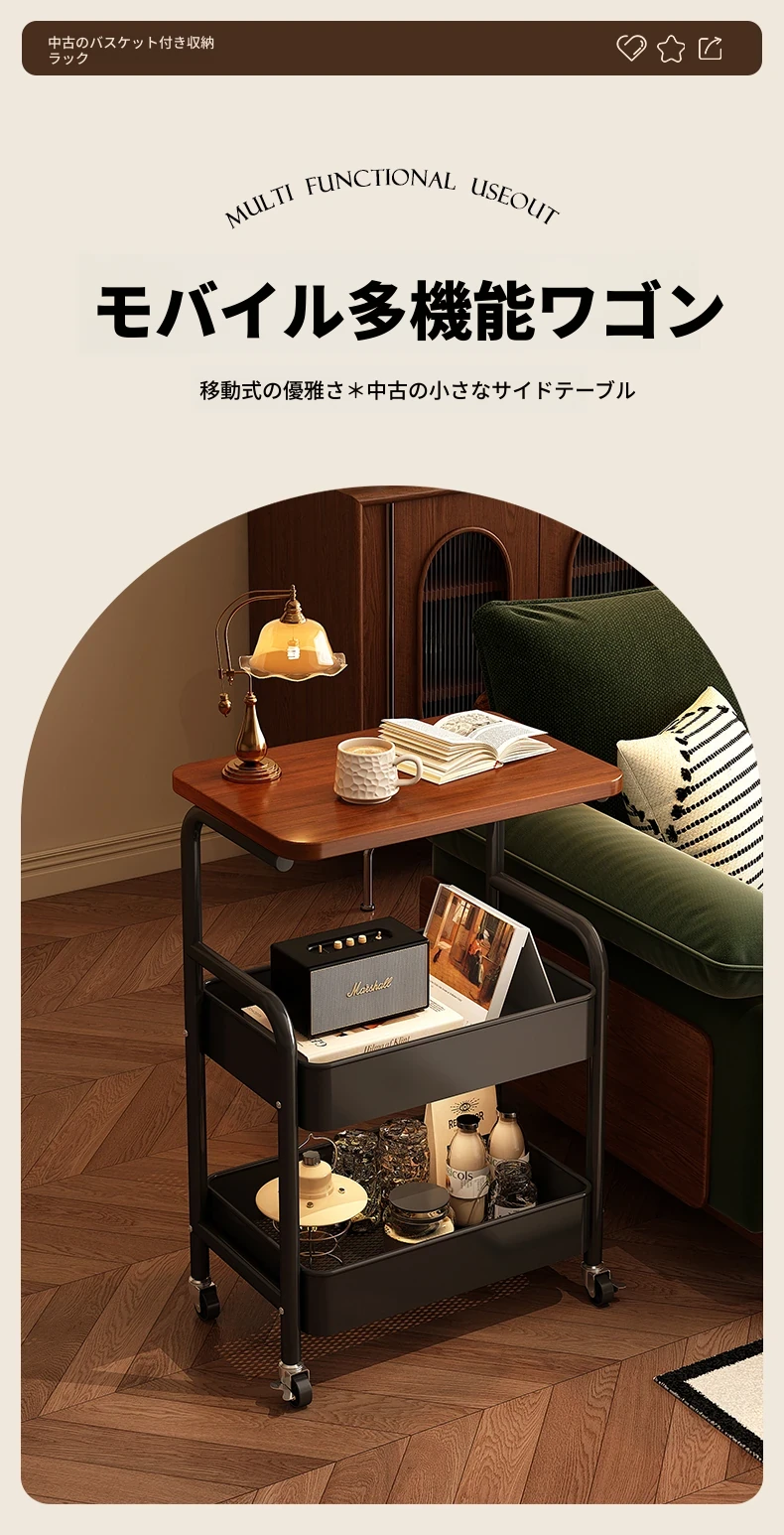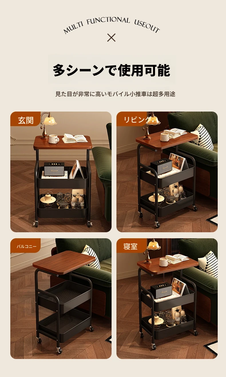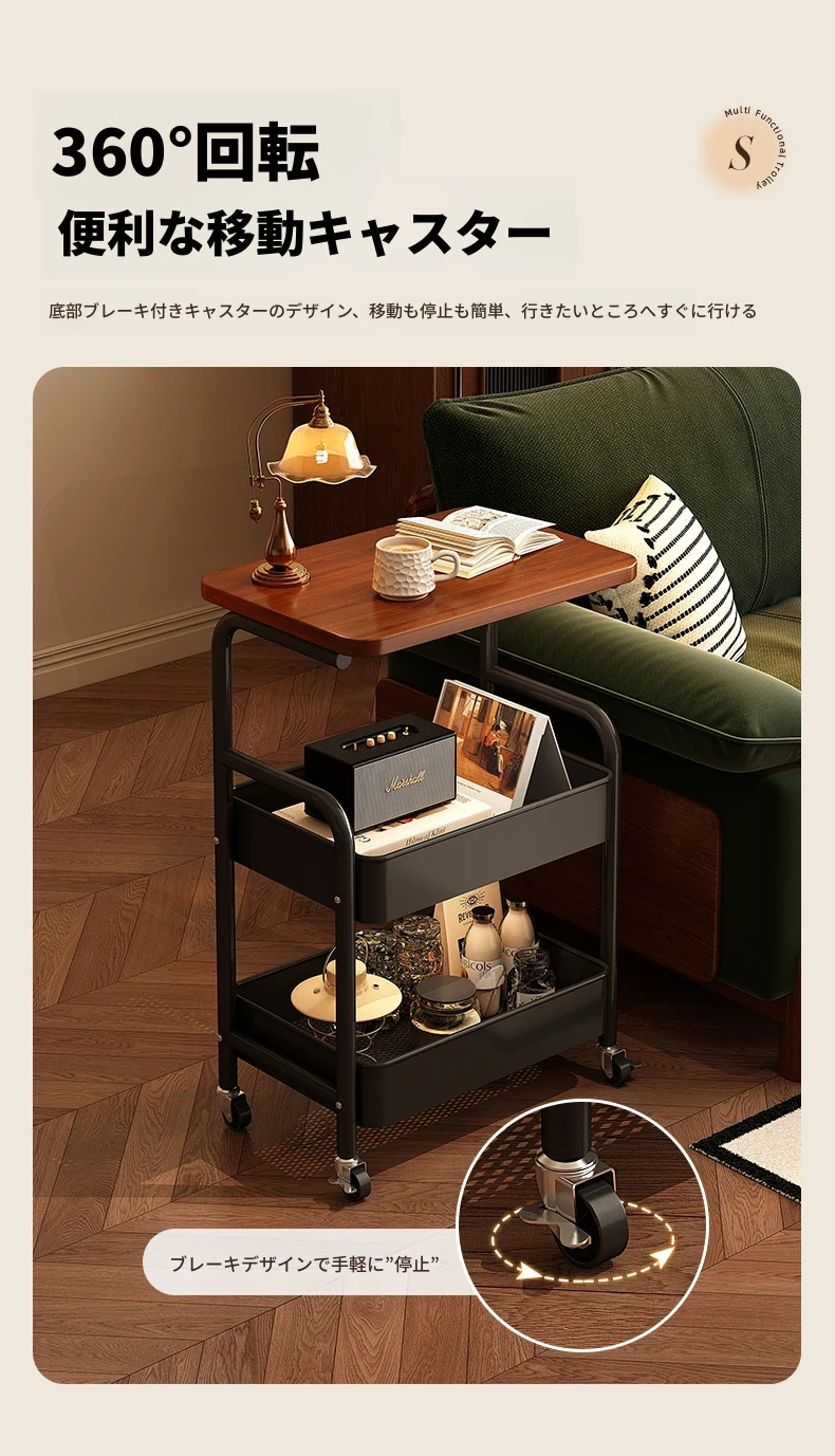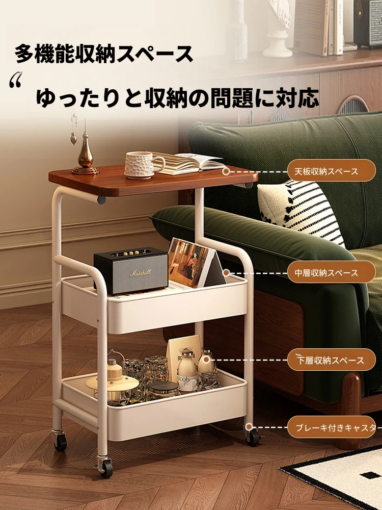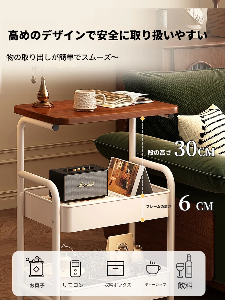 大学生必見!便利なベッドサイドスナックカート - 移動可能なソファサイドテーブル&収納ラック!狭いスペースでも大活躍。おしゃれで実用的な収納ソリューション!