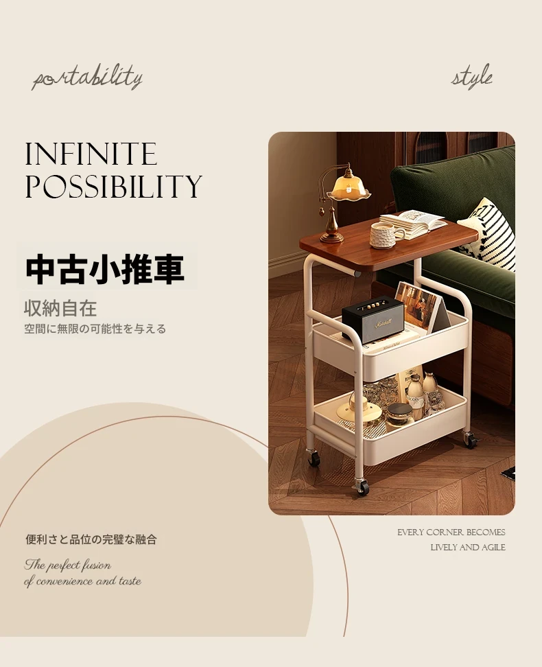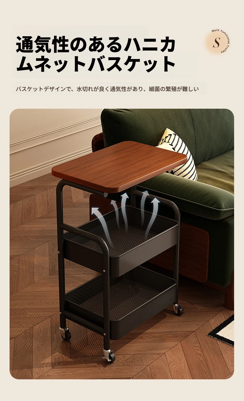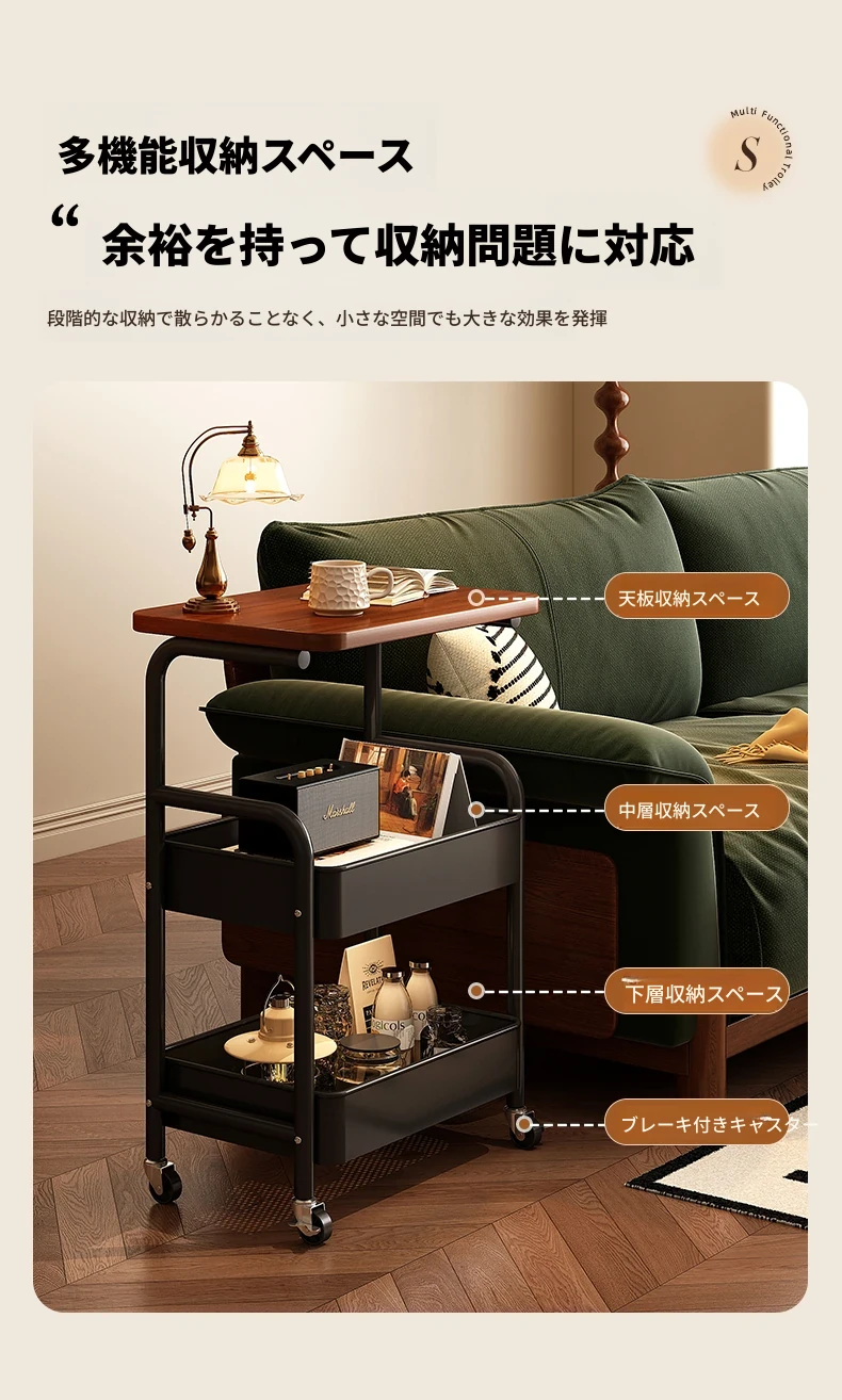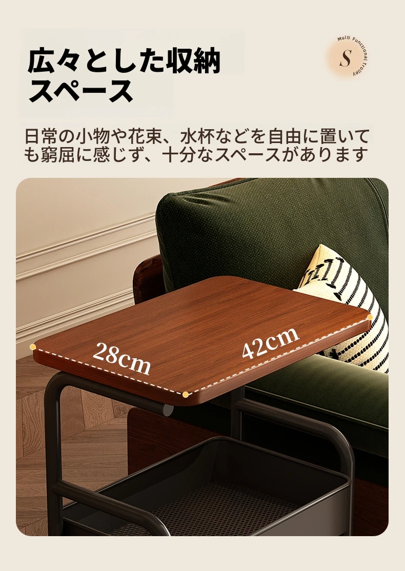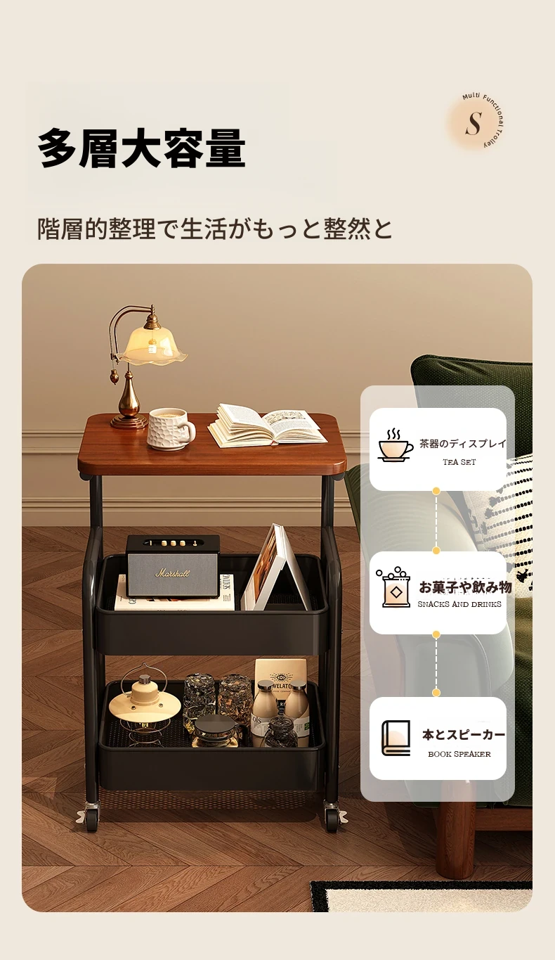 大学生必見!便利なベッドサイドスナックカート - 移動可能なソファサイドテーブル&収納ラック!狭いスペースでも大活躍。おしゃれで実用的な収納ソリューション!
