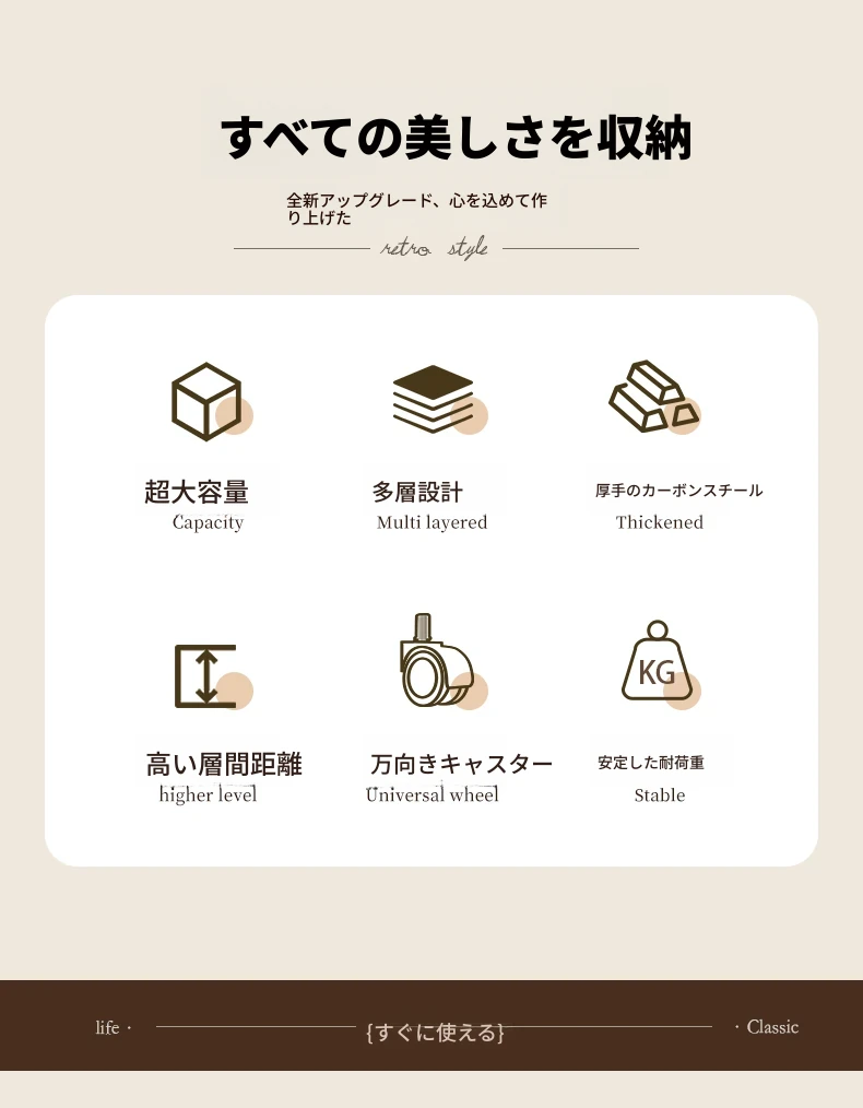 ブラウン天板-ブラックフレーム【多層収納 超強耐荷重】