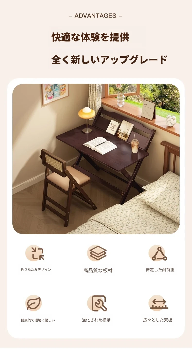 折りたたみ式デスク|子供の学習に最適!スペースを取らない簡単設置のスタディデスク|学生や家庭用にぴったりのワークデスク!