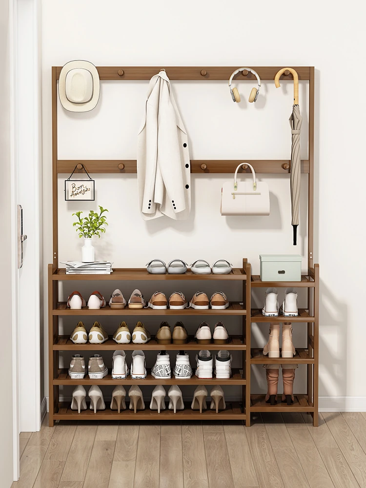 簡単組み立て!シューラック&ハンガー一体型、玄関スペースを有効活用する賢い収納ソリューション。賃貸物件にも最適なスタイリッシュなデザインで、靴や衣類をスッキリ整理!