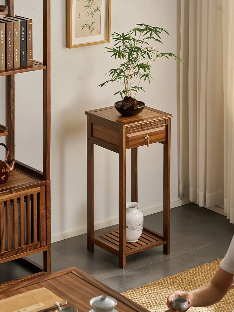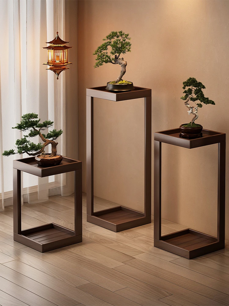 新中式スタイルのフロア型花台 - シンプルでエレガントな実木製、リビングやバルコニーにぴったり!多肉植物やグリーンを美しく飾る収納ラック。お部屋を華やかに彩るアイテムです!