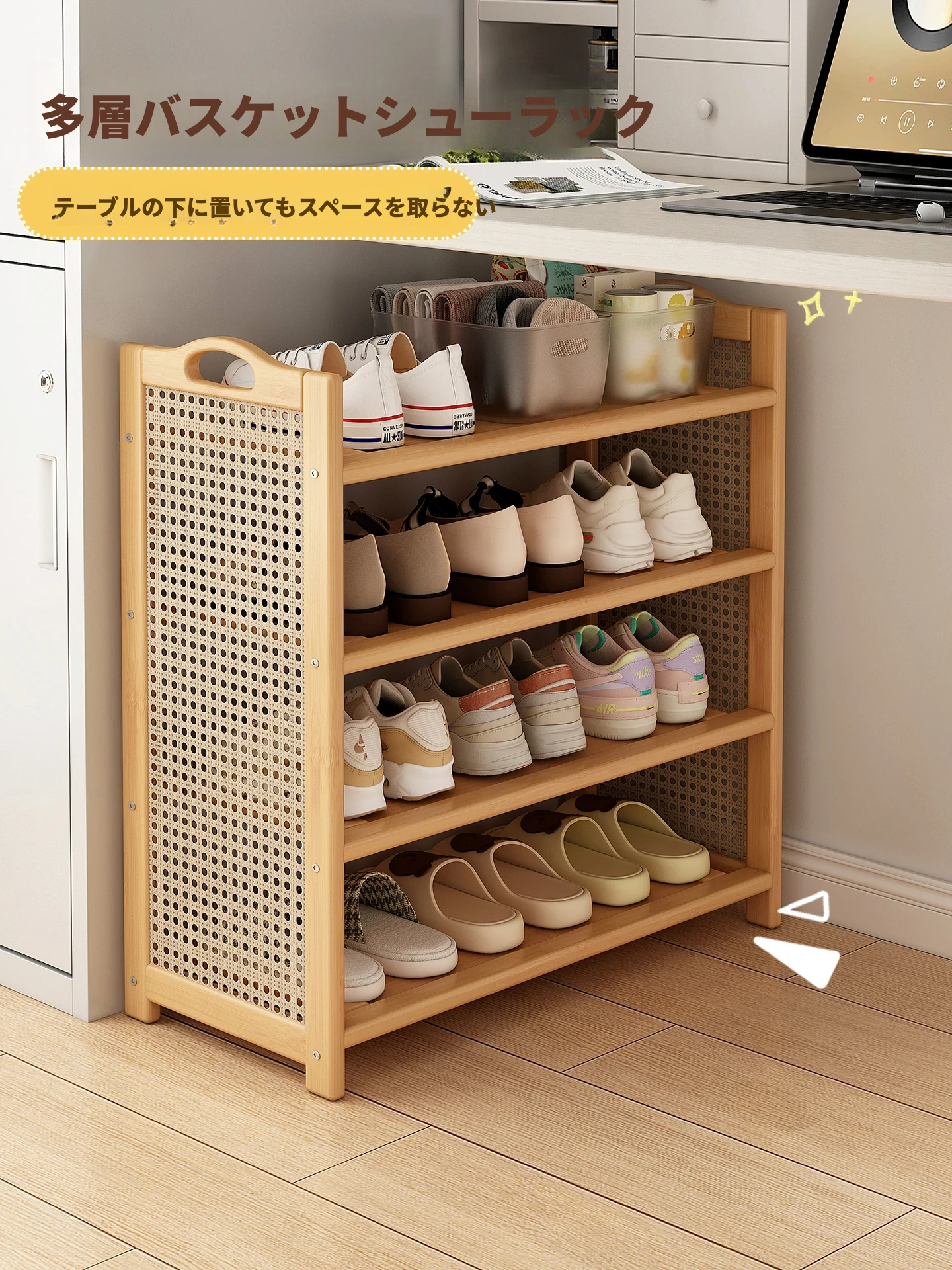 大学生向け 宿舎用デスク下シューラック 省スペース多層型 簡易靴収納棚 家庭用玄関靴整理ラック 狭いスペースにも最適!
