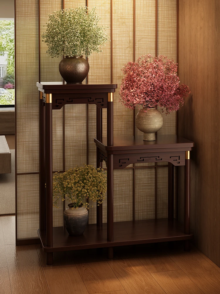 高級感溢れる中式フラワースタンド!バルコニーやリビングにぴったりの実木製置物ラック。2025年新作、植物を美しく飾るための理想的なアイテムです。おしゃれな空間を演出しましょう!