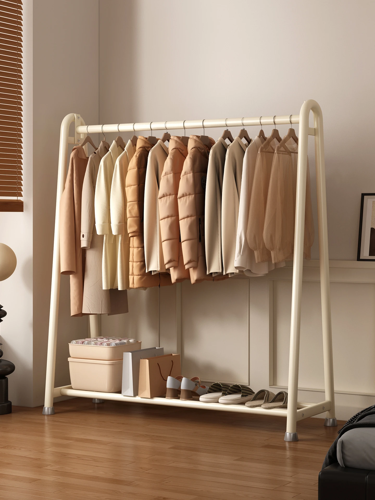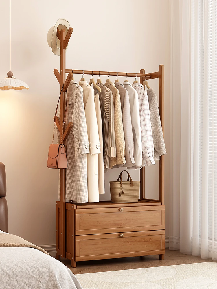 2025年新作!おしゃれな寝室用フロアハンガー - 小型住宅にぴったりな衣類収納ラック!ベッドサイドに最適な簡単収納アイテムで、あなたの生活空間をスッキリ整頓!