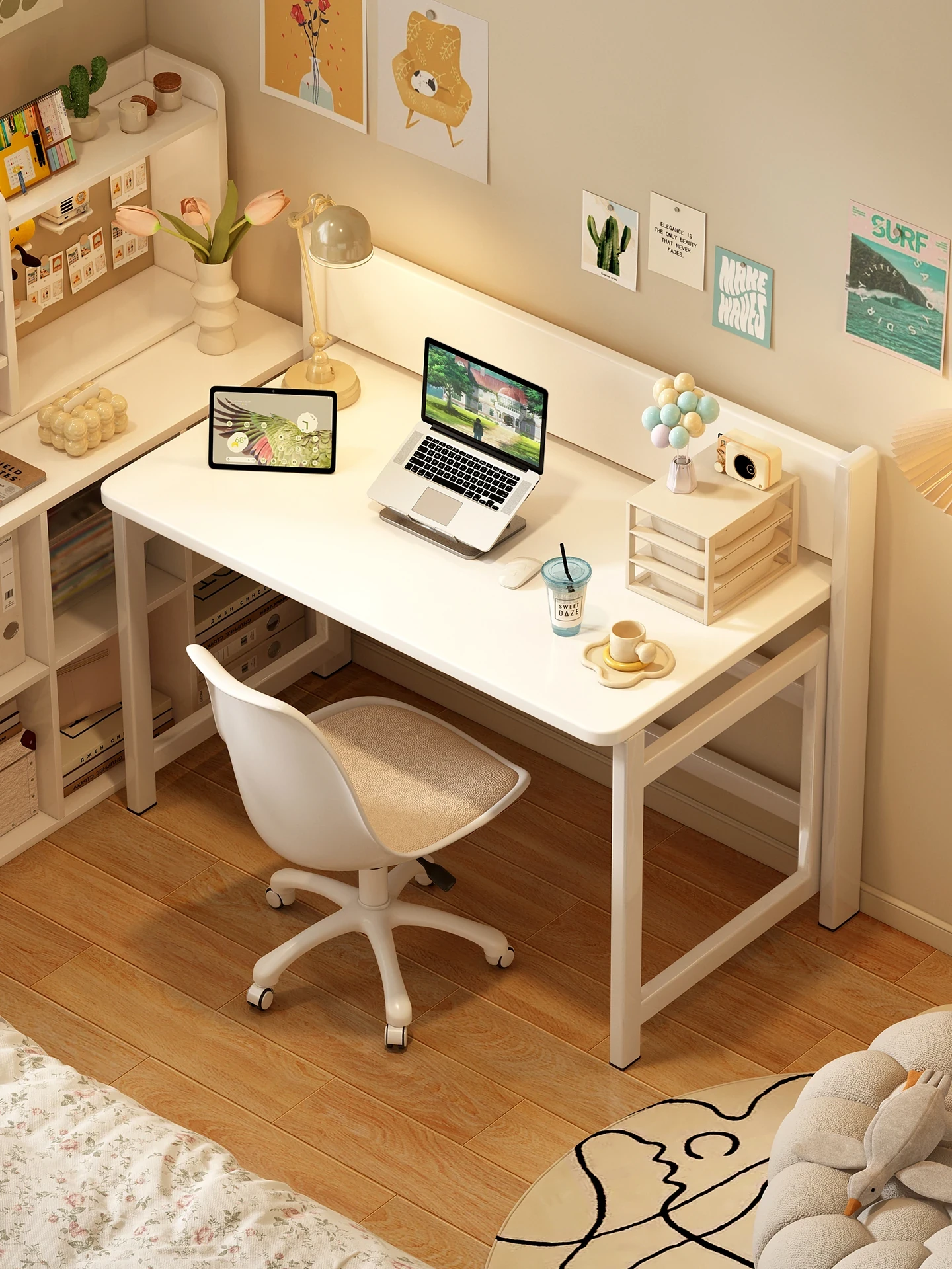 折りたたみ式学習デスク|省スペースで使える!子供にも最適な多機能テーブル|小型アパートやベッドサイドにぴったりなホワイトデスク!