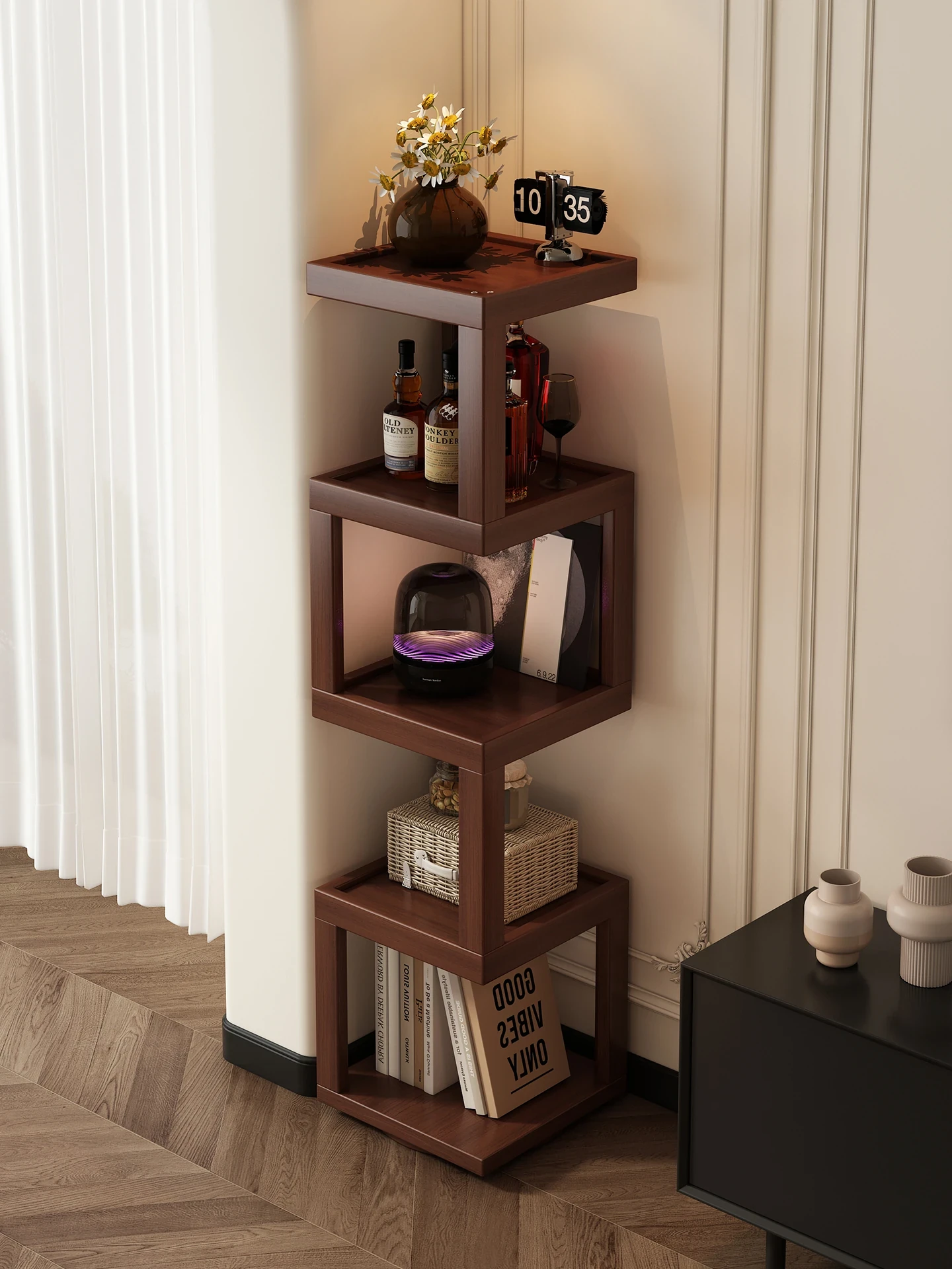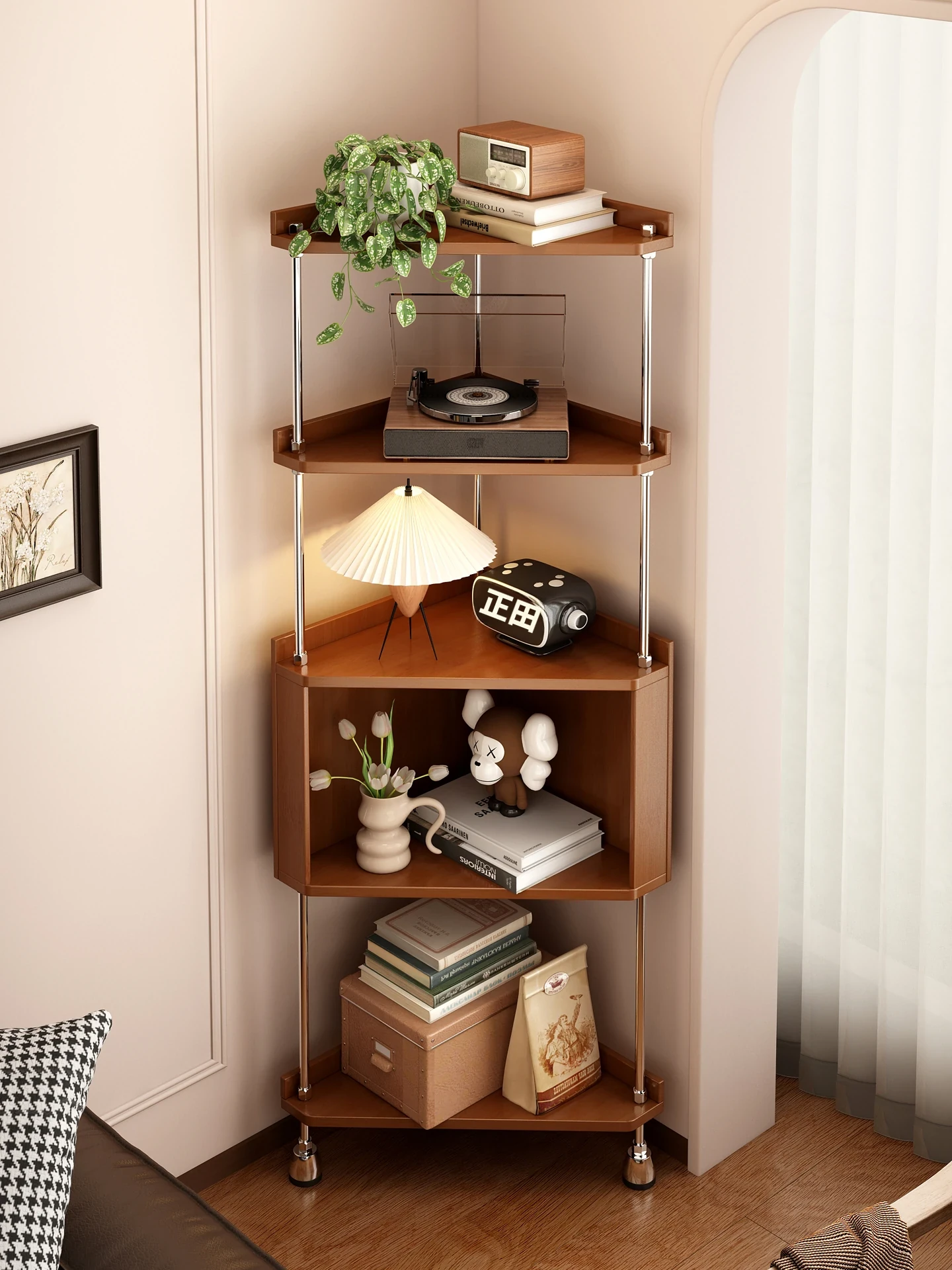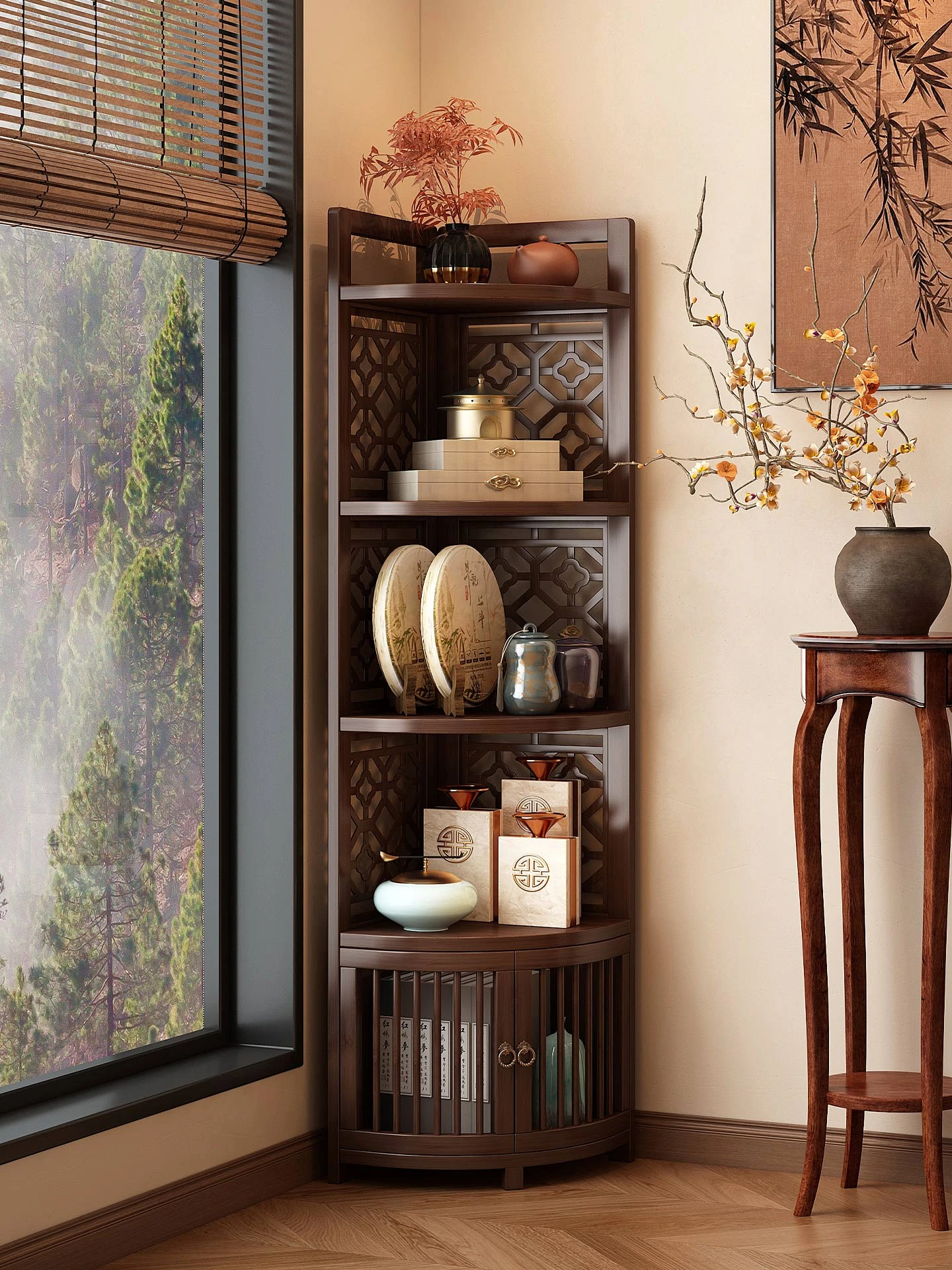 2025年新款!中式转角柜,完美适合客厅与书房的多层置物架,巧妙利用墙角空间,为您带来整洁与美观的收纳解决方案!