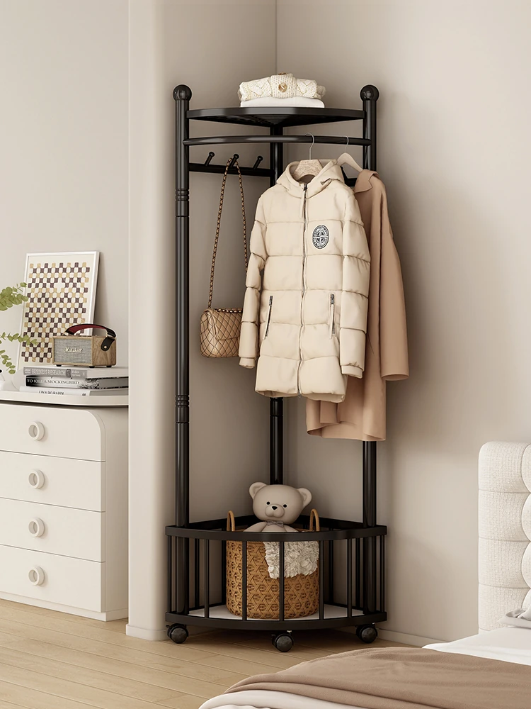 角に置けるスタイリッシュな鉄製ハンガーラック - 寝室やベッドサイドに最適!夜のお洋服をスッキリ収納、スペースを有効活用するデザインで、お部屋をおしゃれに演出します。